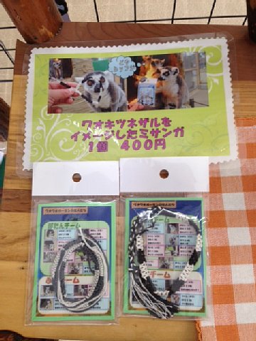 ワオキツネザルが大好きな担当者が、コツコツ丹精込めて手作りしたミサンガ。このミサンガをすればどんな願いもきっと願いが叶う(?)事でしょう。