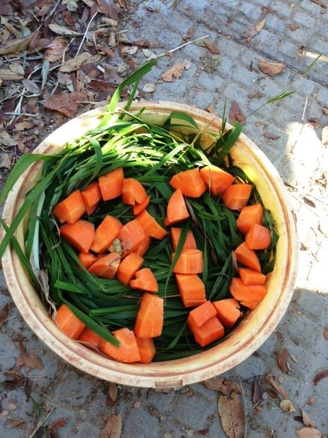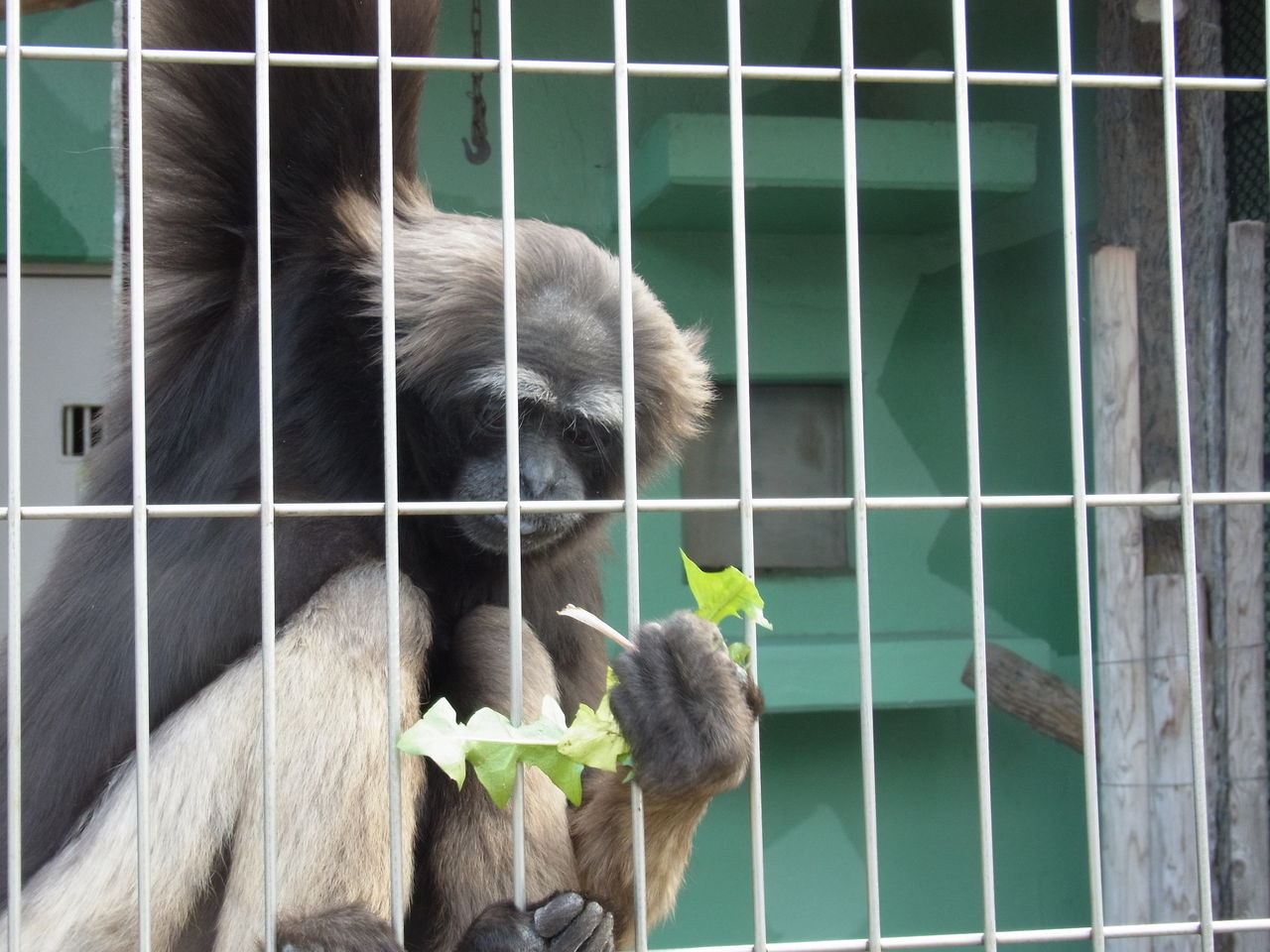 夕方、舎内を見に行くとママのキセレから離れ、慣れない手つきでイモやバナナを食べていました☆