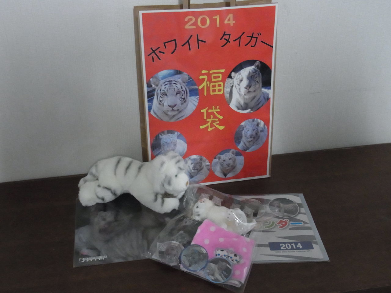 中身は9割ホワイトタイガーグッズになっています。ハンドタオルや缶バッヂ、ポストカード、マスコット人形、ピンバッヂなどなど盛りだくさんのホワイトタイガーグッズ、なんと10点のグッズが入っています!!