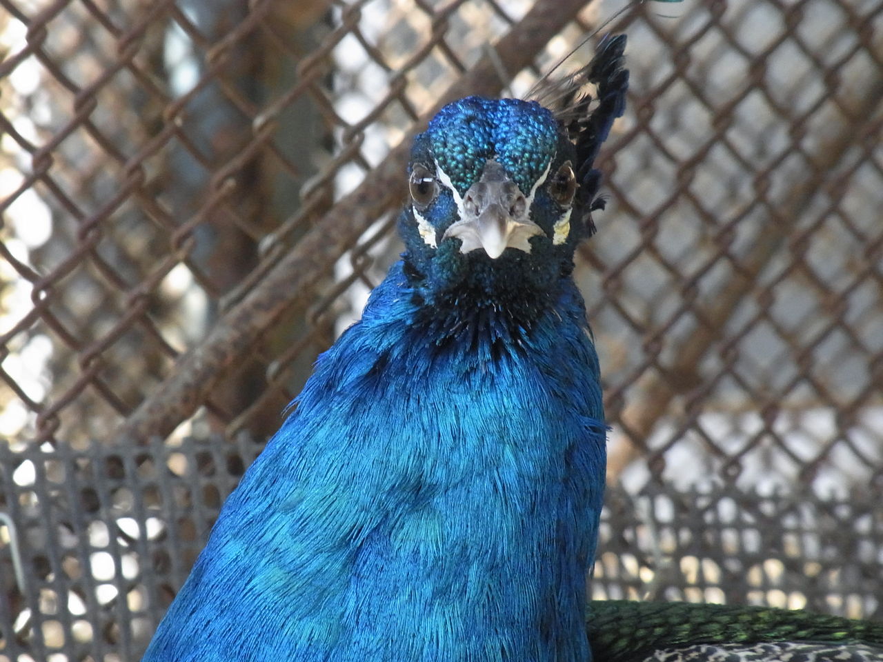 インドクジャクのブロン。今はみなさんがご覧になれないところで飼育していますが、近いうちにアクシスジカの隣に展示する予定です。大きくて綺麗な羽をぜひ見てください。