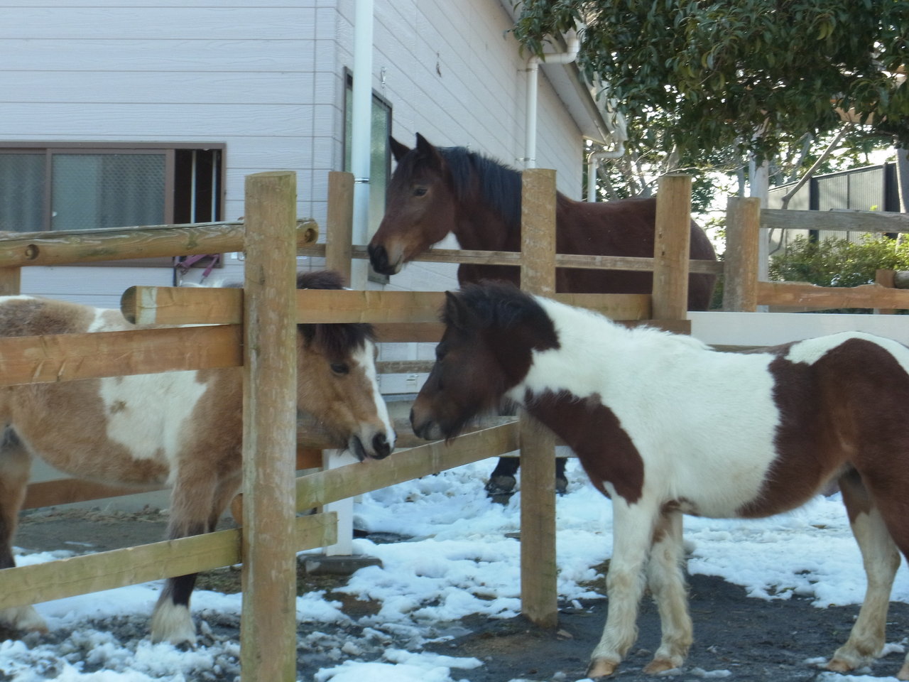 足元がぬかるんでいるので乗馬の営業はお休みでしたが、ポニーたちは雪の中でも元気そうでした。