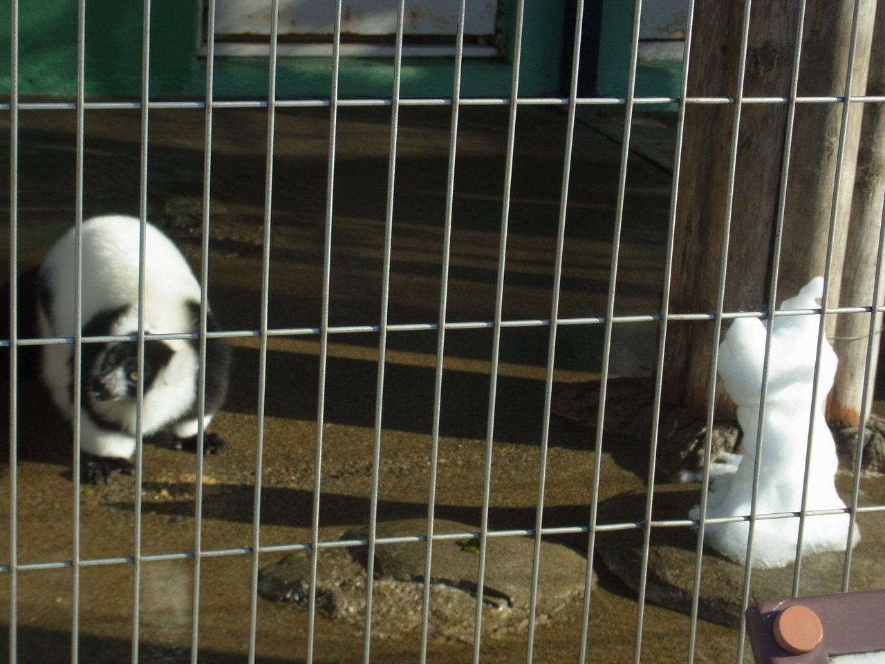 私の担当しているワオキツネザルの展示場も雪まみれ。