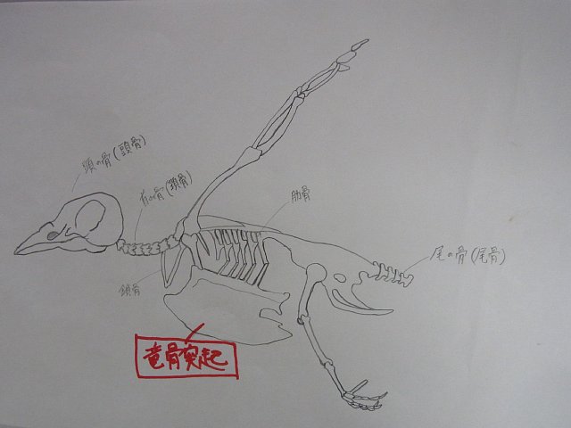 自分で書いたので下手な絵で申し訳ございません。さぁ、この絵に「竜骨突起」