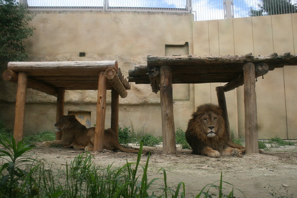 元々1つ、台がありました。が!!しかし、これから夏を迎える準備として、ライオン2頭分の日陰を作るため台を追加しました!!