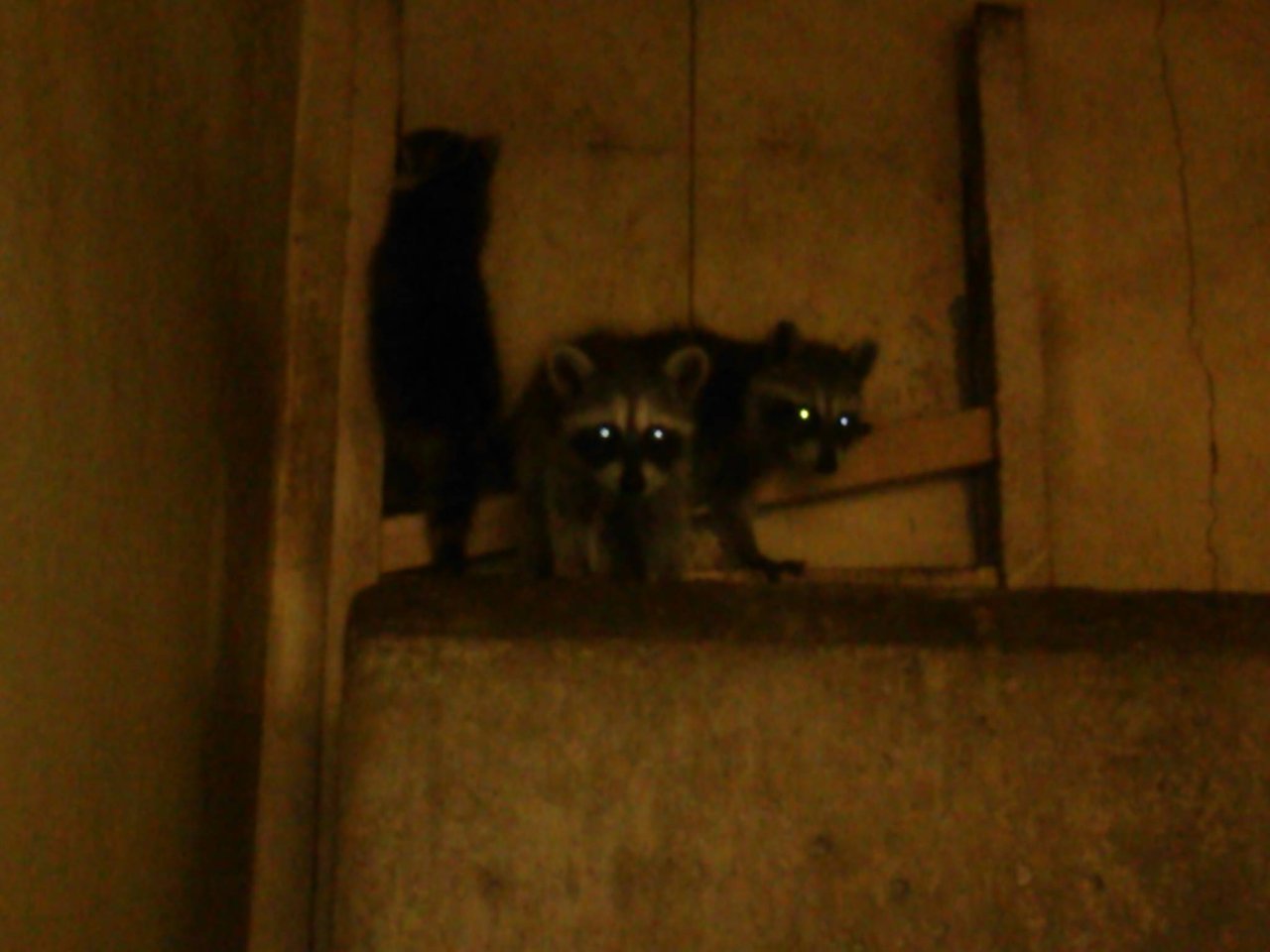 アライグマの子供たちは夕方になると最近見つけたお気に入りの場所で仲良く3頭で遊んでいます。