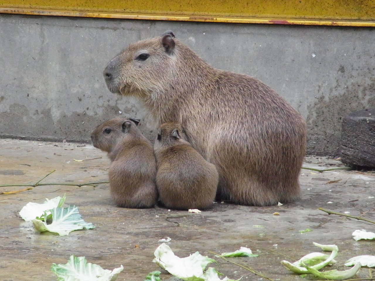 6月18日カピバラのウメちゃんが2頭の赤ちゃんを無事に出産しました。