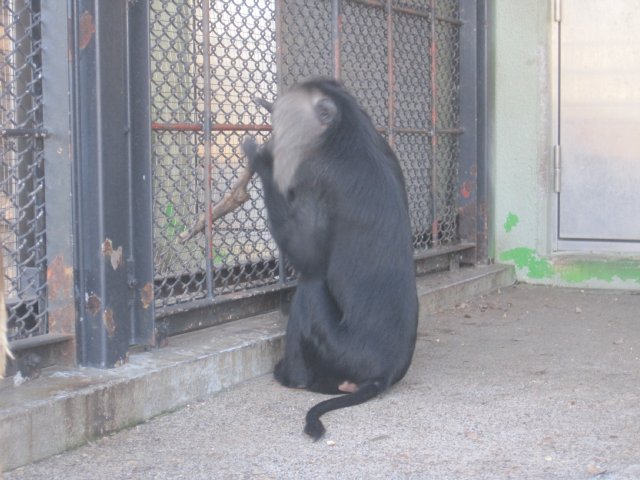 この木の枝をなぜか隣りのニホンザルの放飼場へ一生懸命いれようと頑張っていました(笑)