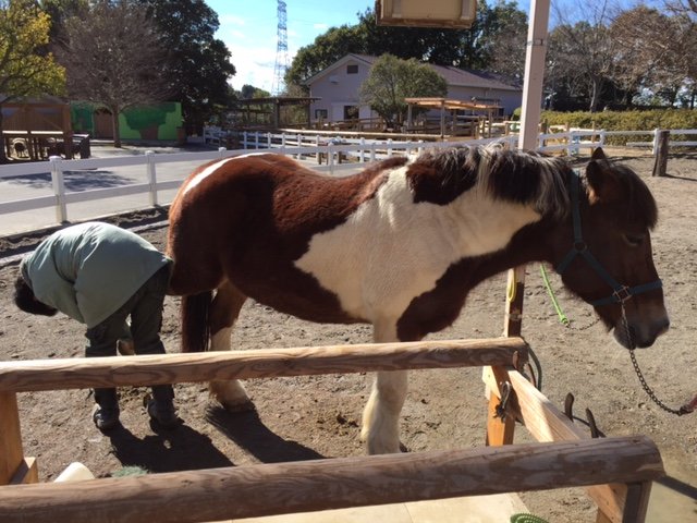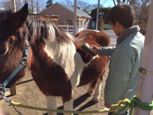 当園で、ポニーに乗って乗馬体験が出来るポニー乗馬コーナーがあります。今回は、そこで働いているポニー達の営業前のお手入れを紹介したいと思います。