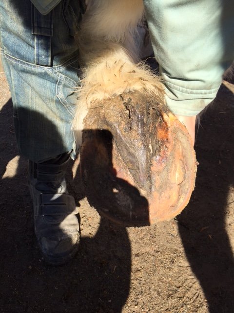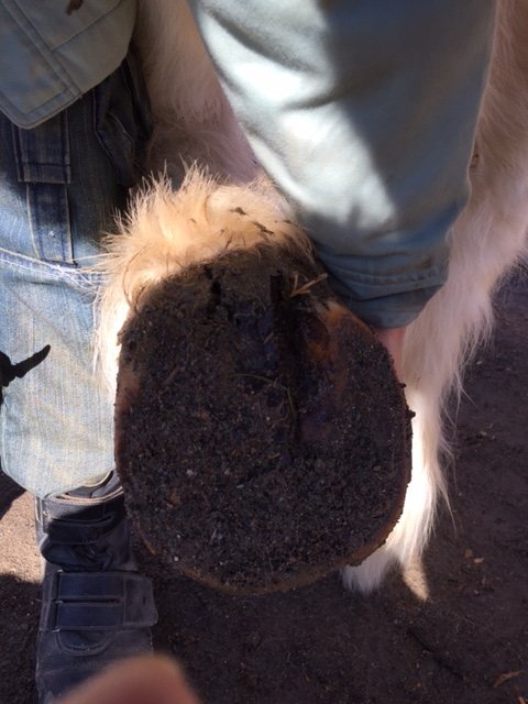 これが蹄の裏です。これを「てっぴ」という道具を使い、土を取っていきます。