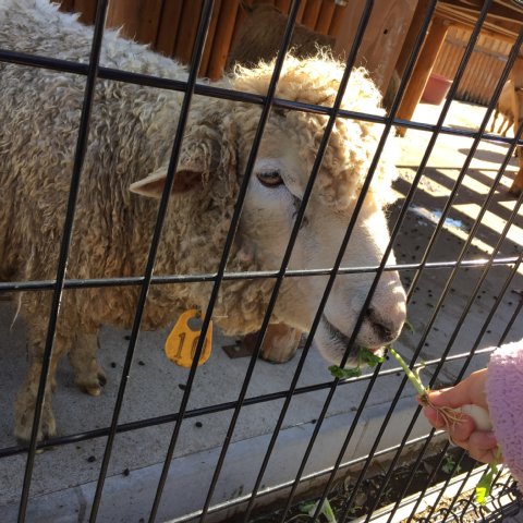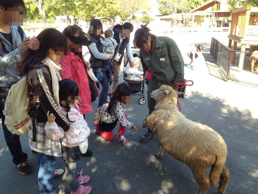これは、私とヒツジのアヤメちゃんと放飼場から出て、お客様とふれあい親しんでもらうイベントでしたが、アヤメちゃん触るお客様の感動された表情がとてもうれしく思い、ヒツジの魅力を多くの方に伝えられたかと感じられました。