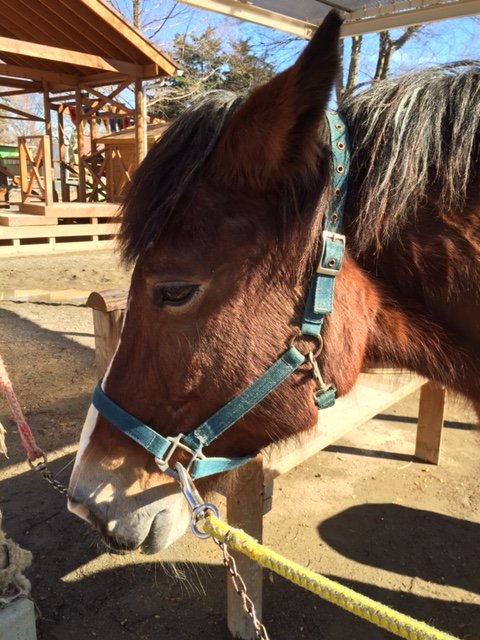 ポニー乗馬コーナーの中で一番体が大きく、体重約500kgの巨漢ポニーです。ただ、とても気が小さく、優しい性格なので他の小さなポニーに追いかけられてしまう事もしばしば。