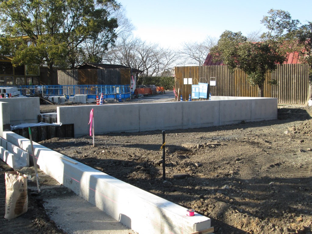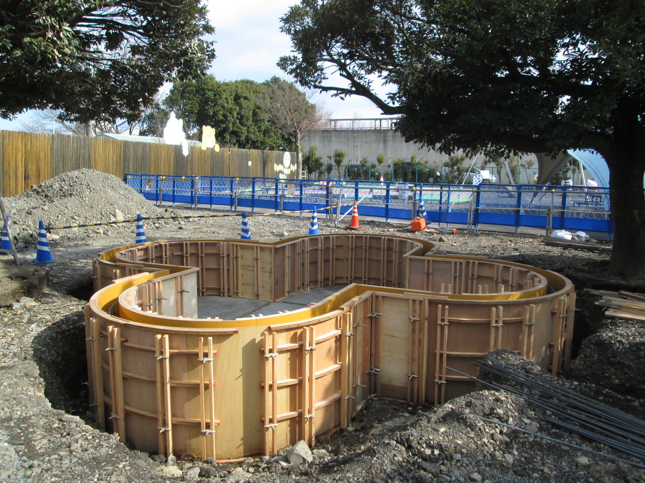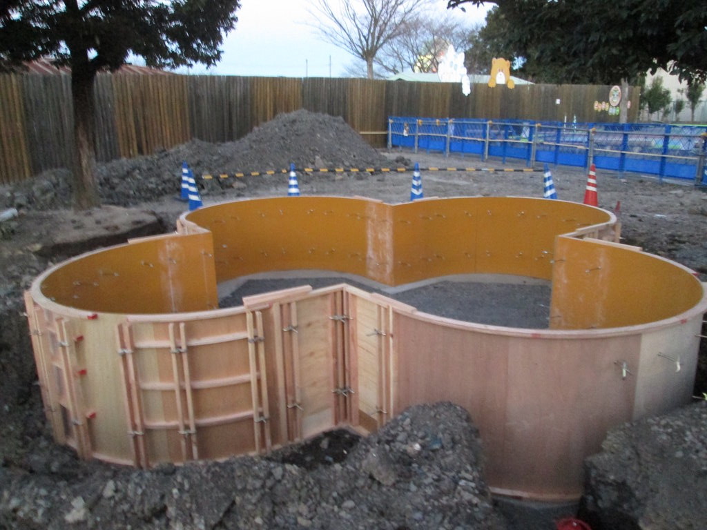 池が着々とできあがってきた頃、外周の基礎作りが始まりました。