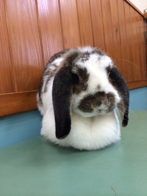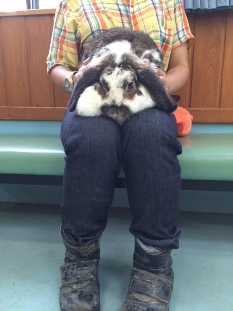 メスのウサギ特有の、顔の下にあるだるんだるんの肉垂を触ると、おまんじゅうみたいになってしまいます。