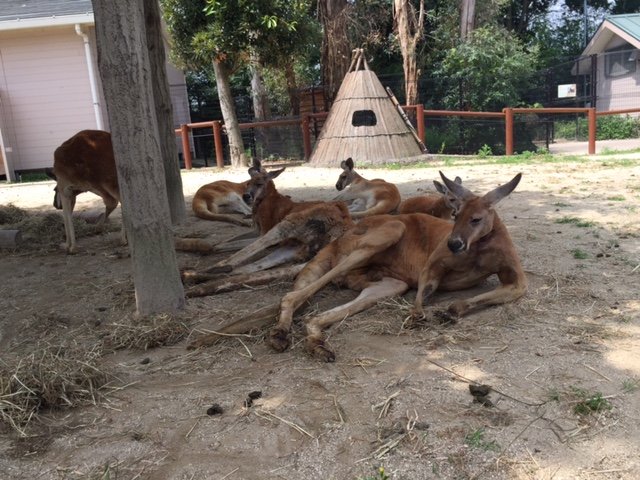 皆さんは連日の猛暑、いかがお過ごしでしょうか?毎日暑くて動物達もバテ気味...。私の担当しているアカカンガルー達も日陰で休んでいますね。