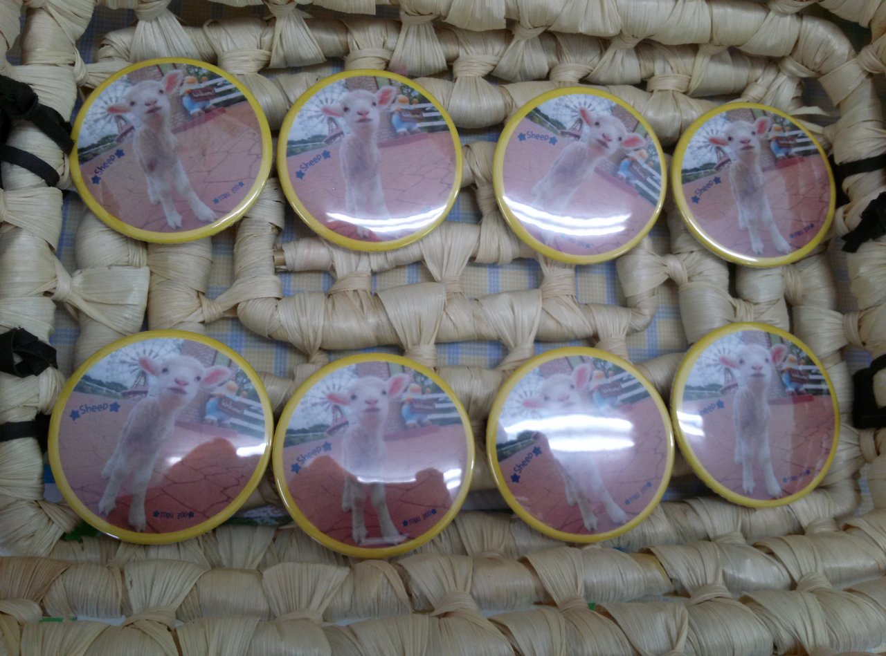 仔ひつじのポップなプリントをカンバッチにした「子ひつじのカンバッチ」300円