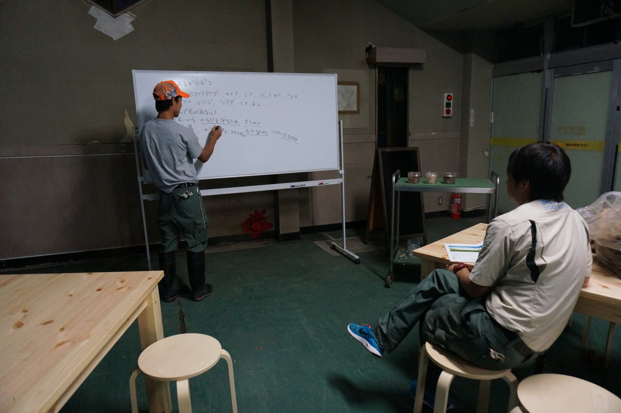 「飼育係と一緒に動物のおはなしを聞きながら工作をする」