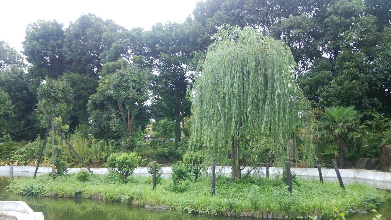 ふたつの島はロープを器用に渡って往復しています。一番高い柳の木