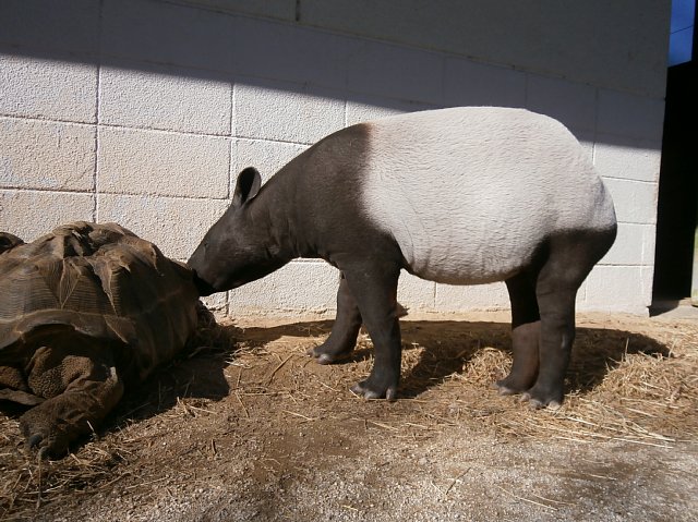 マレーバクの展示スペースに、一緒に大きな亀がいますよね?