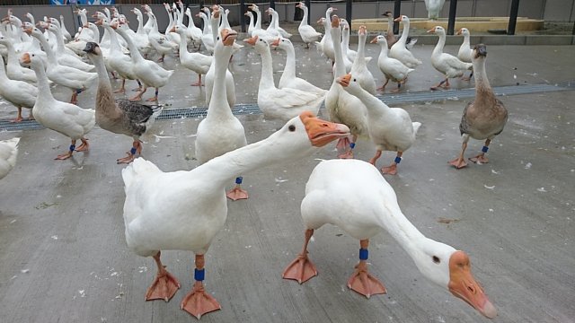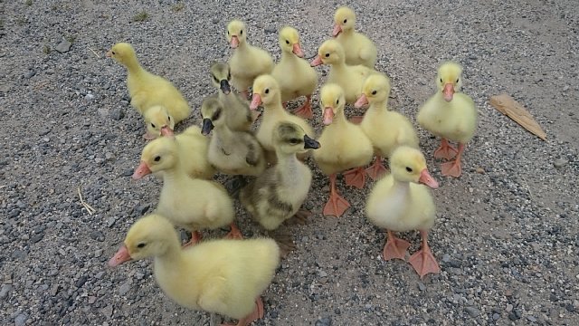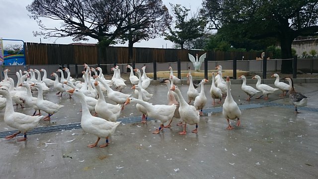 順調に大きくなり、ほぼ大人のガチョウと同じ大きさまで成長したので、先日、ガチョウ広場へと移動し、お父さん、お母さんガチョウ達と同居させ、新しい生活がスタートしました。