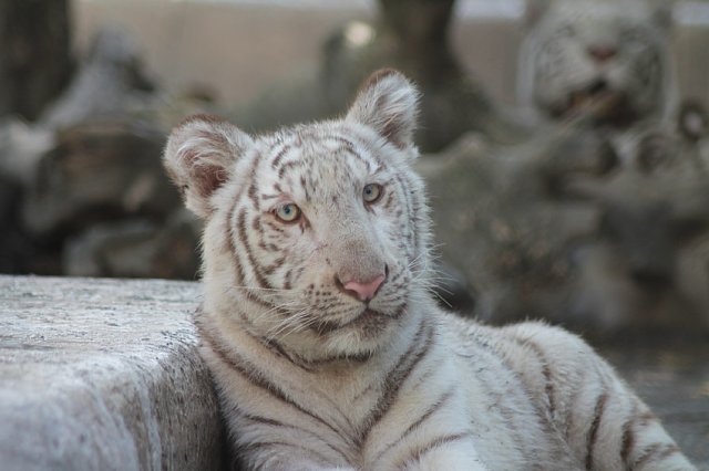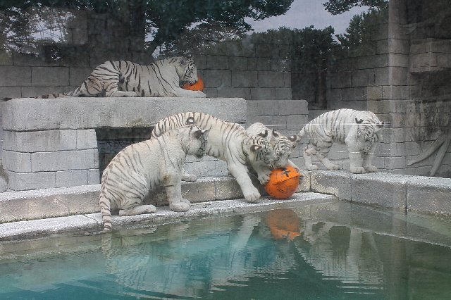 ホワイトタイガーは白なので通常は光を弾く効果があるので、通常のトラとの体