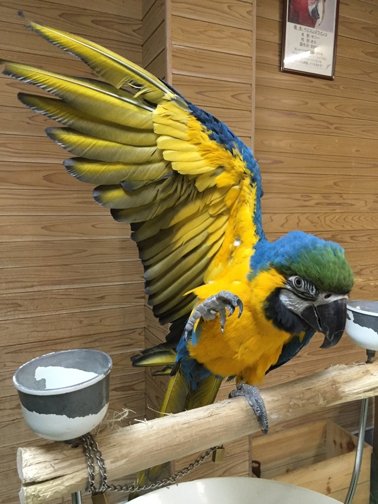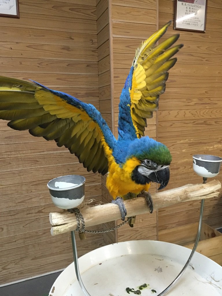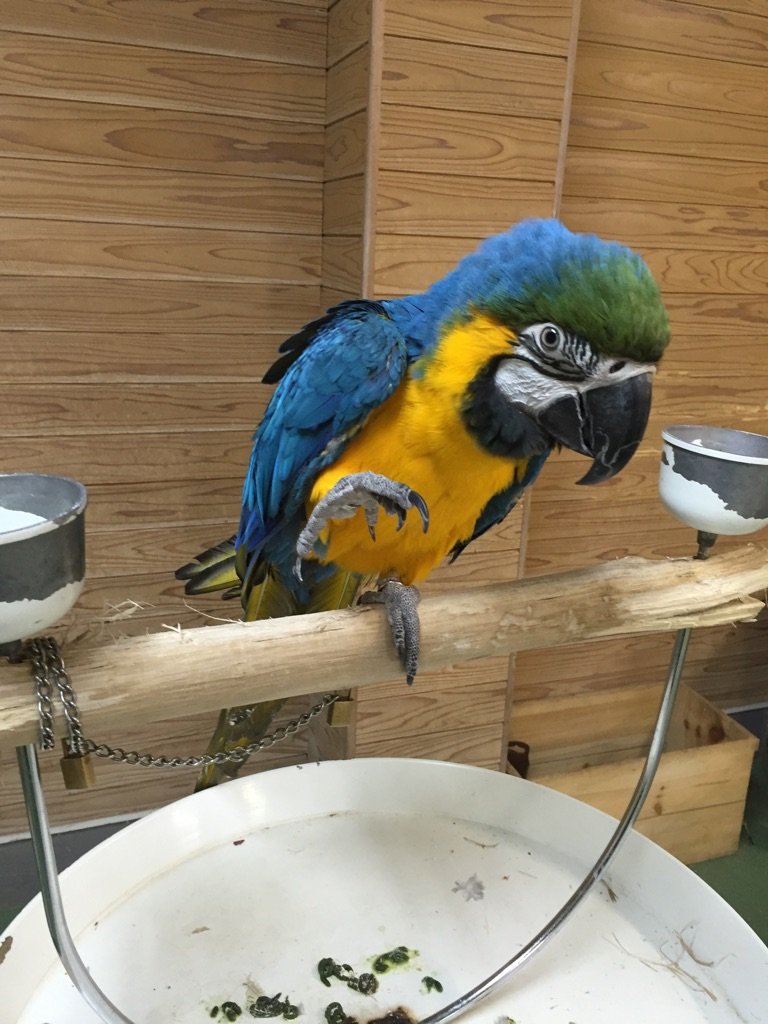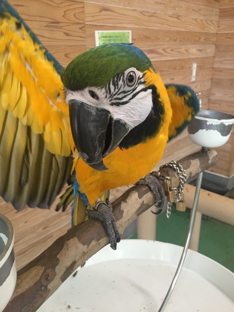 隣には元気なコンゴウインコ2羽もいますので、いろんな鳥さんの生声を聞き比べてみてくださいね♪