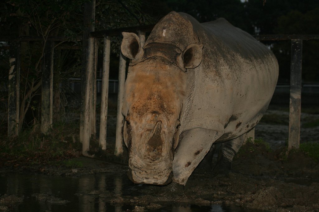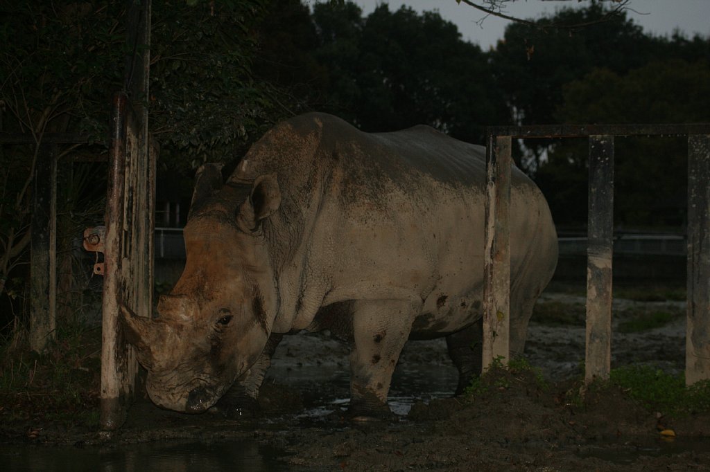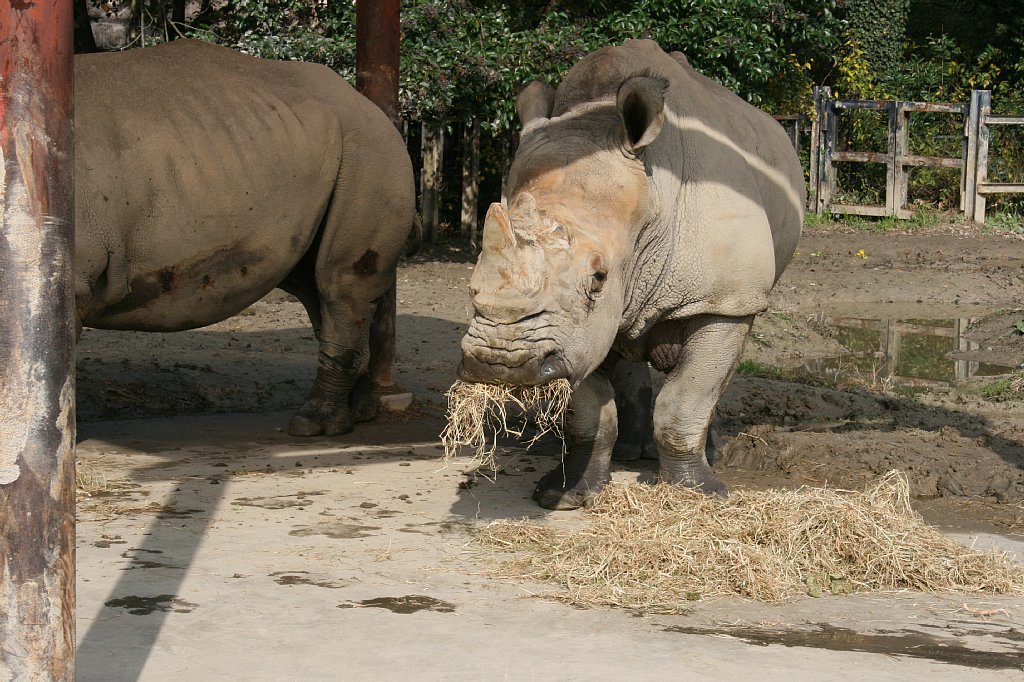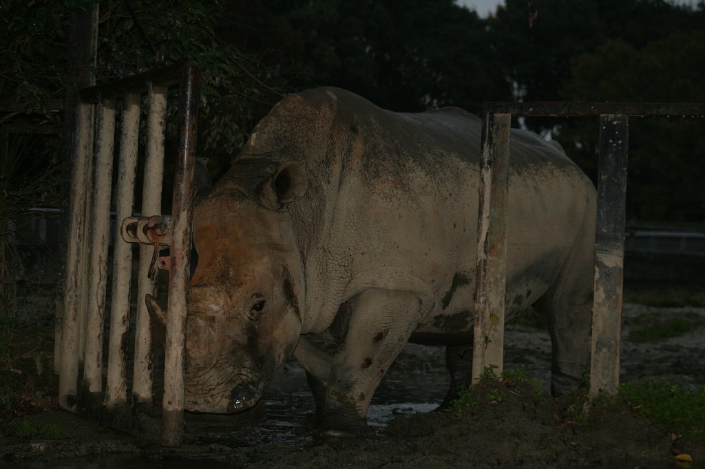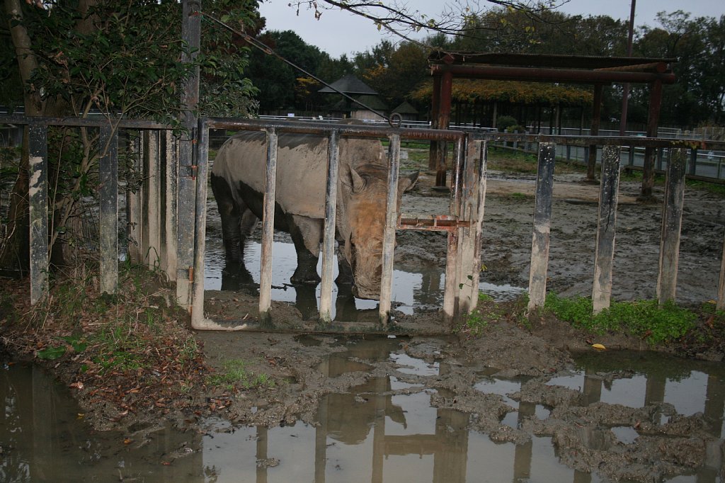 食べ終わると、少し展示場内を散歩して、柵に顔を乗っけて休んだり、座ったり、泥浴びしたり、まったりしたり、昼寝したり。2頭は、たまにケンカをするけど、とっても仲良し、いつも隣同士で寝ているよ。