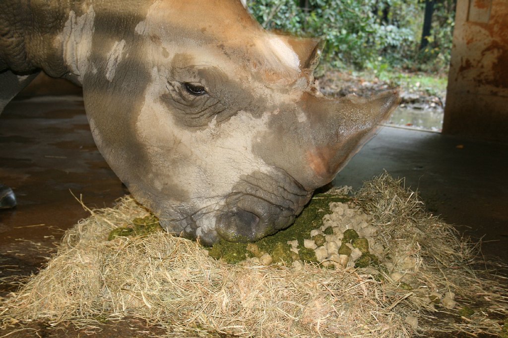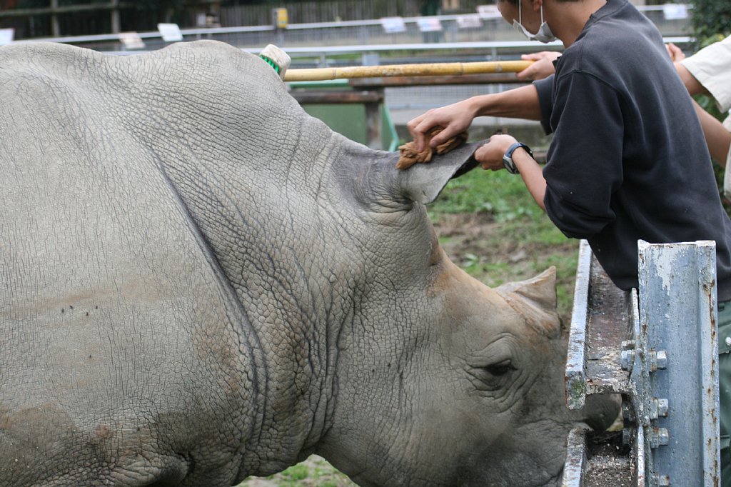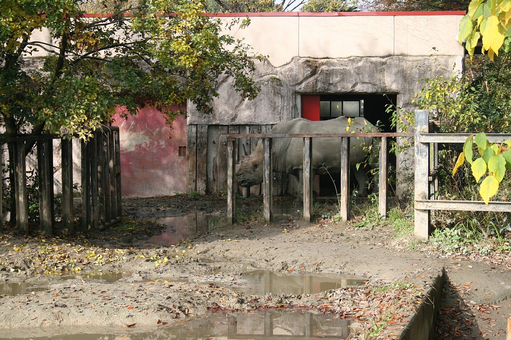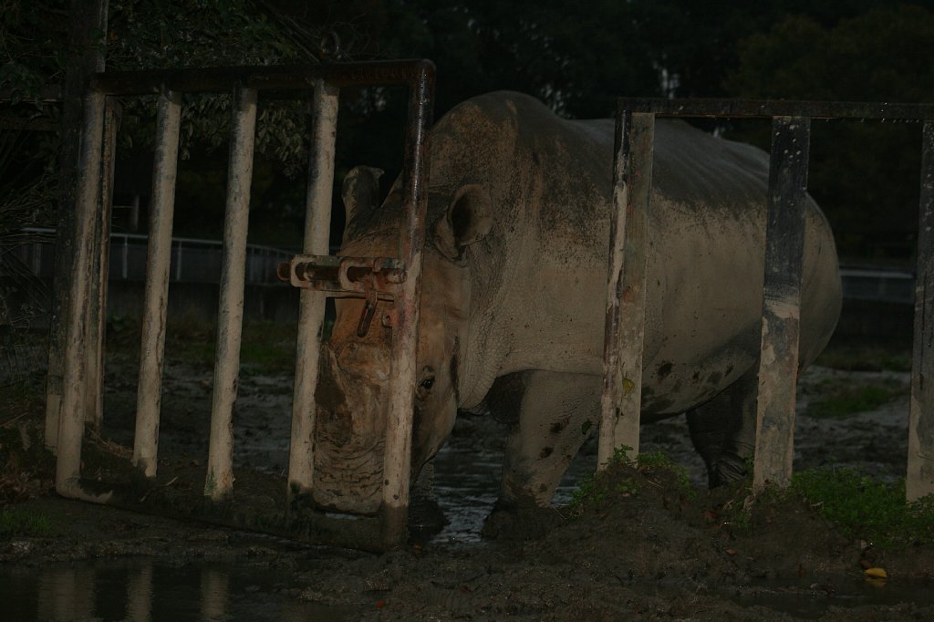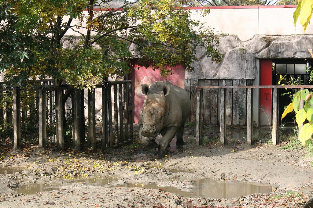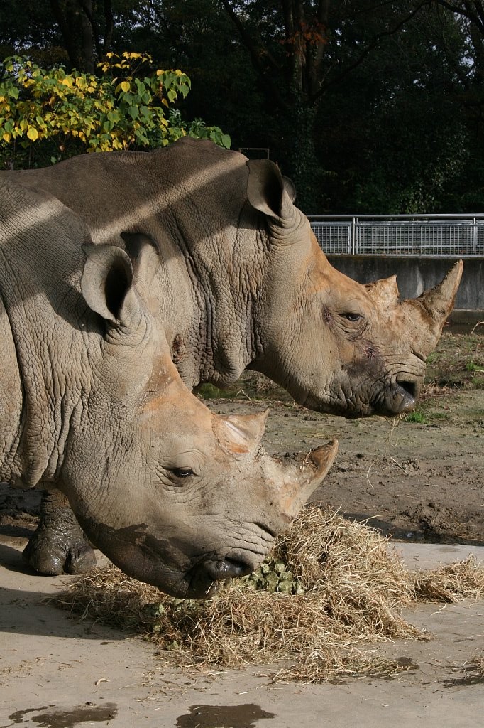 食べ終わると、少し展示場内を散歩して、柵に顔を乗っけて休んだり、座ったり、泥浴びしたり、まったりしたり、昼寝したり。2頭は、たまにケンカをするけど、とっても仲良し、いつも隣同士で寝ているよ。