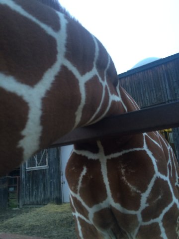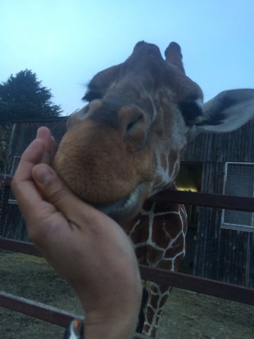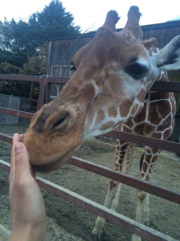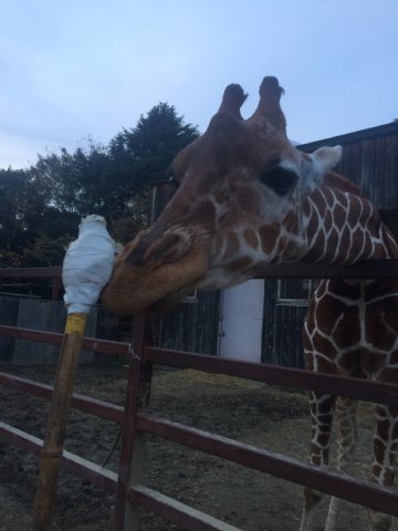 今では、なが〜い首から、胸や前あしまで触れるようになりました。