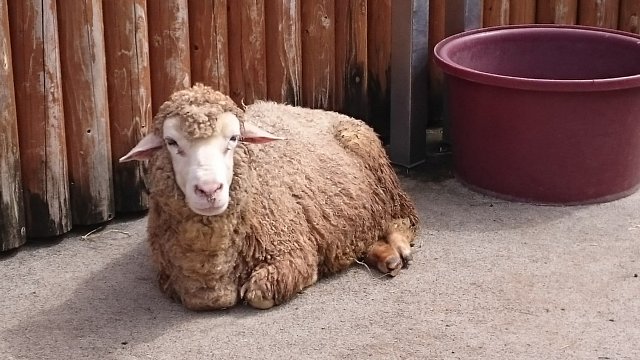 そのチヨくんの展示場の場所が少し分かりづらいかもしれないのですが、アルパカさんの展示場の近くにある手洗い場所の裏にいるのです!
