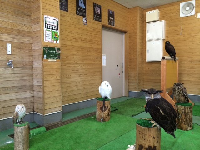 現在5羽の猛禽類が並んで展示中です。