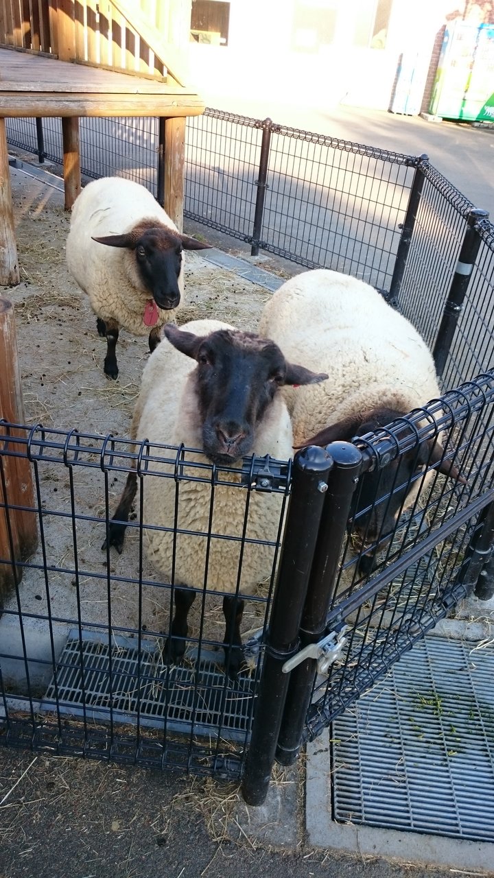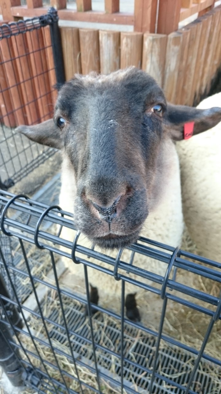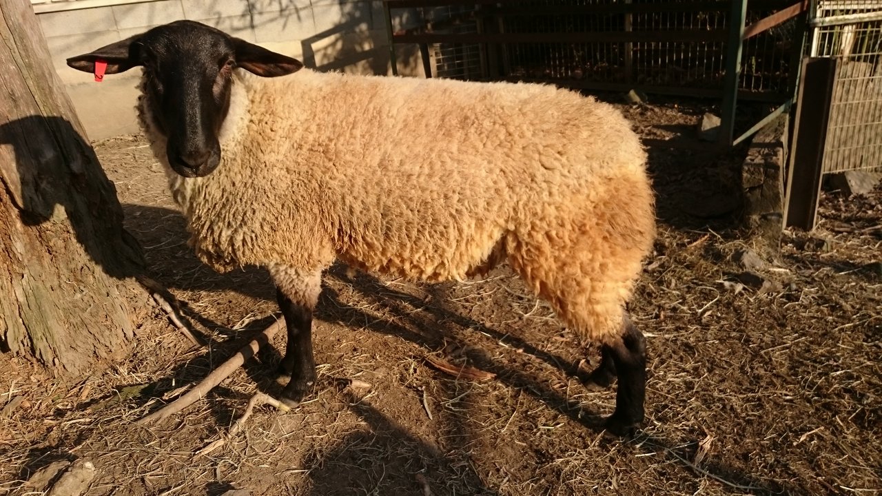 やってきてくれた動物はヒツジのサフォーク!ヒツジのショーンで有名の顔の黒いヒツジさんです!