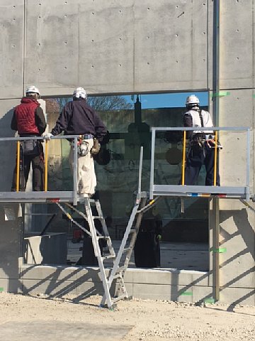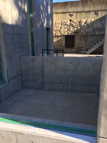 そして今回のガラスはホワイトタイガー舎で使用しているガラスの1.5倍のガラスを使用しガラスの厚さも1.5倍、クマの圧倒的な破壊力にも耐える設計です、なので窓枠も獣舎の中に埋め込む形になります。これは職人さん達も、試行錯誤をして無事に完成、そして遂にガラスがはめ込まれました。その時の手順を少しだけ紹介します。