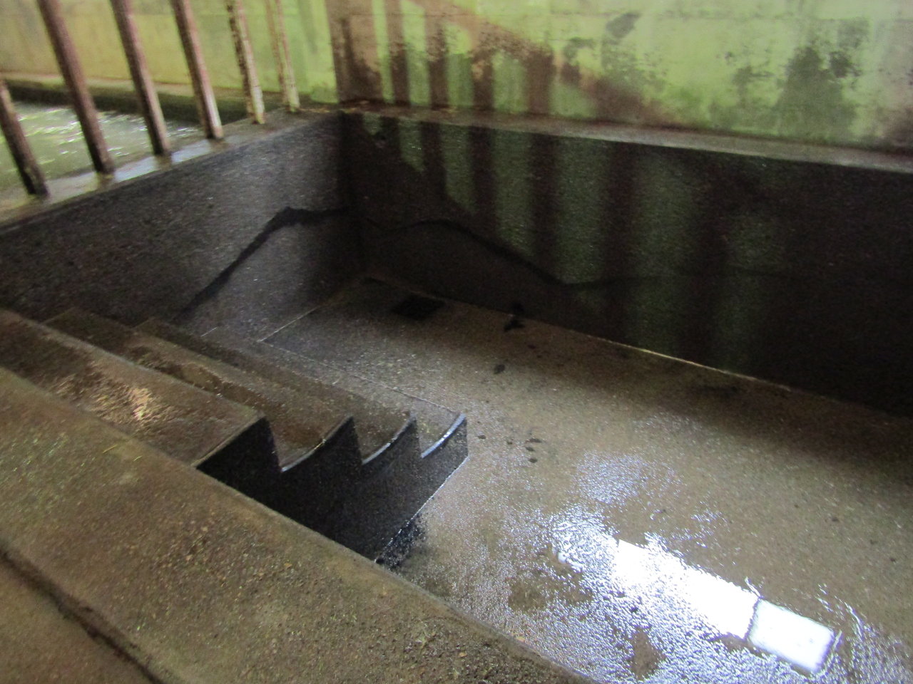 どんどん水が減っていきます、プールの中にある物は全部流します。ちなみに大きな階段が4段ありこの階段を使ってズー君はプールから出たりプールに入ったりします。