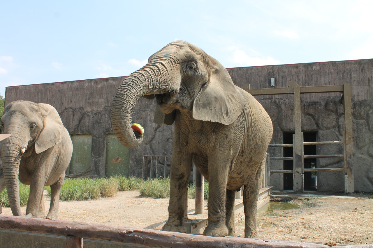 ゾウさんのランチタイムでは、バナナやリンゴ、ニンジンを通常与えていますが、夏野菜のキュウリも追加して、お客様が『キュウリも食べるんだぁ』と普段と違うゾウランチを楽しんで頂けました。