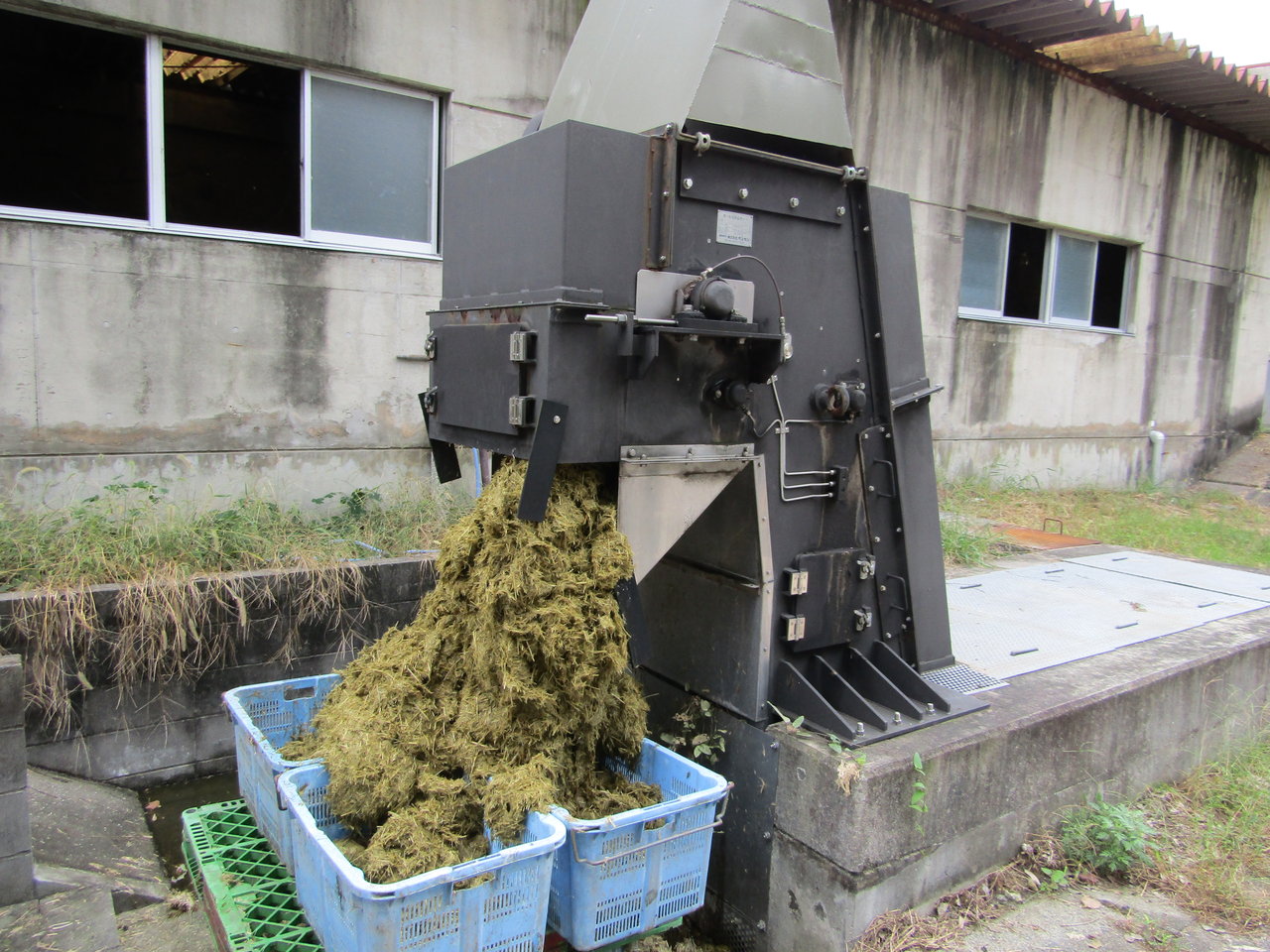 さてここからが本番です、全部を排水升に流し込みますが、一気に流すとすぐに詰まってしまうので、なるべく多くの水と一緒に流します。プールの中が無くなりましたが、何処に行ったかというと、この機械で、水と排泄物に分けられます、そうすると排泄物のみが出てくるのです。