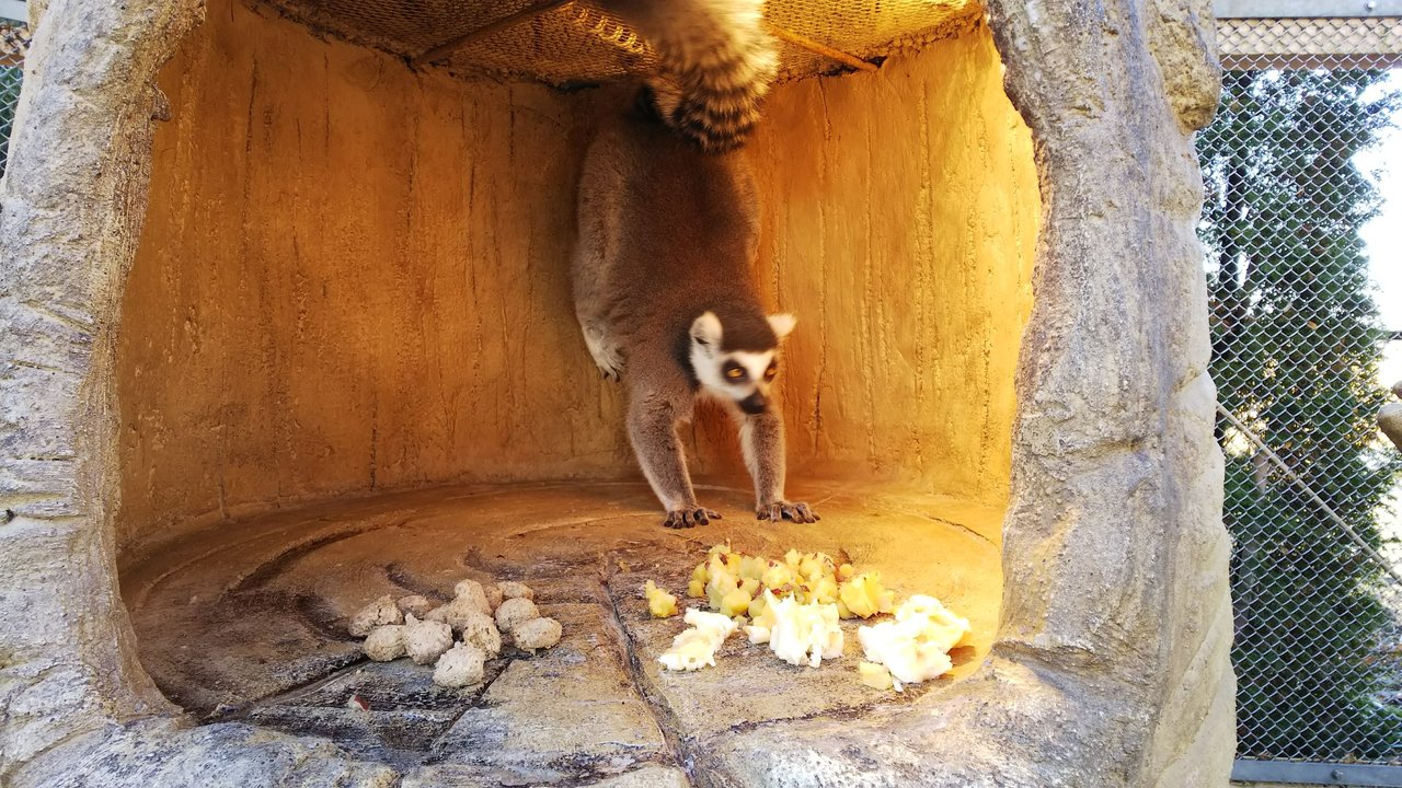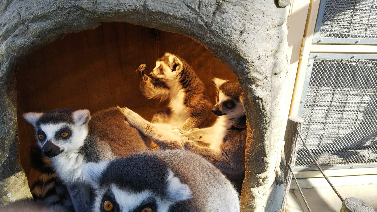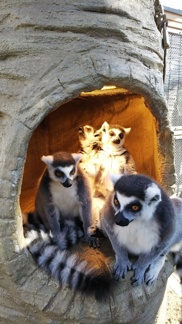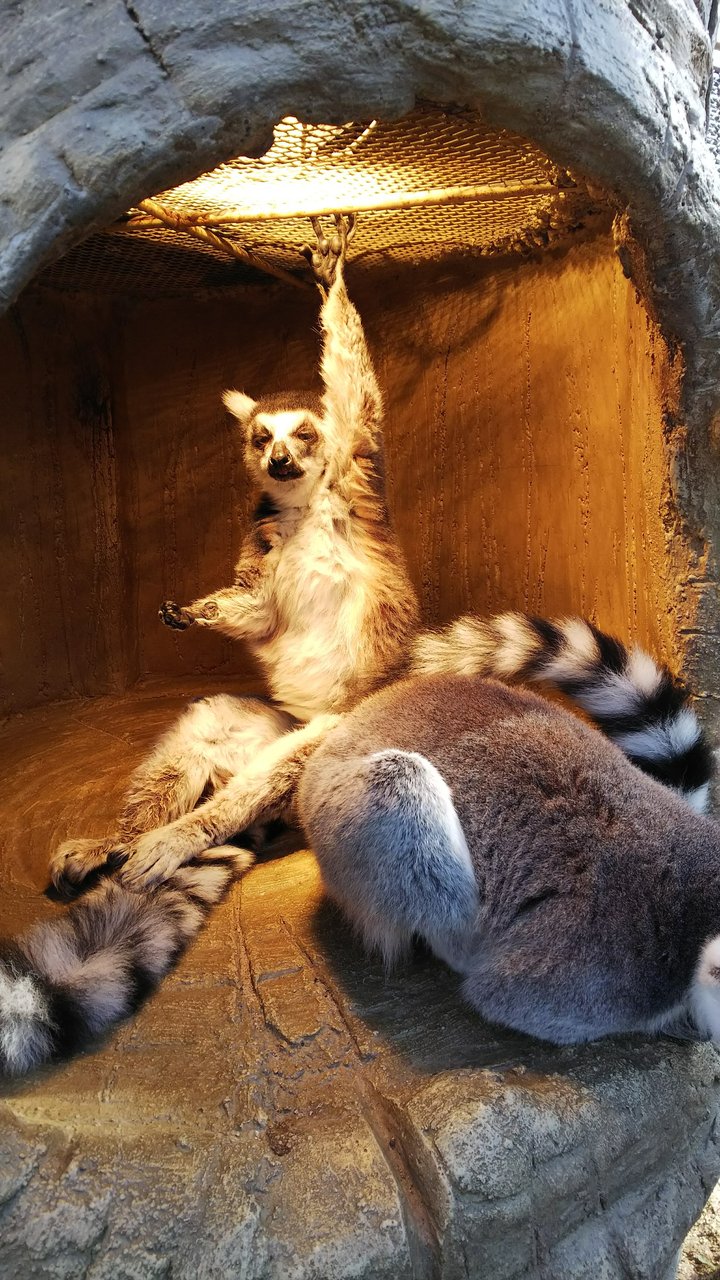寒いとあまり動きがないワオキツネザルですが、暖まっている姿も可愛いので、ライトで暖まっている