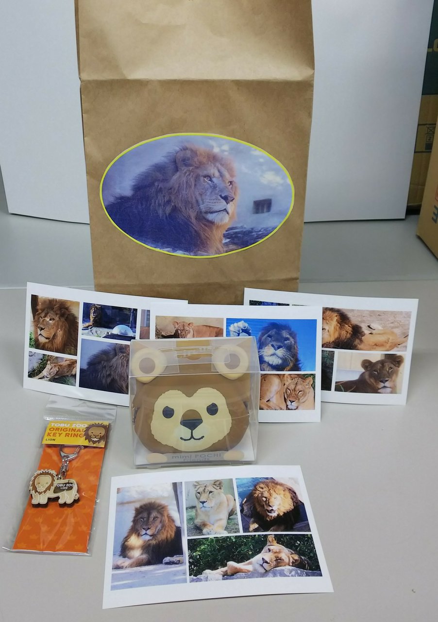 こちらはライオンのガマグチ、ライオンの毛入りキーホルダー、ライオンのポストカード4枚