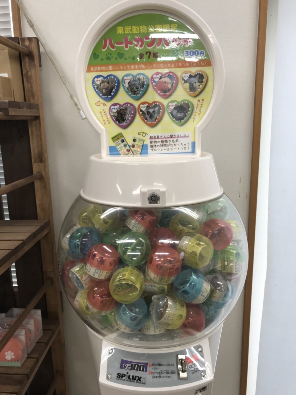 ハート型のカンバッチのガチャガチャが店内に登場です。