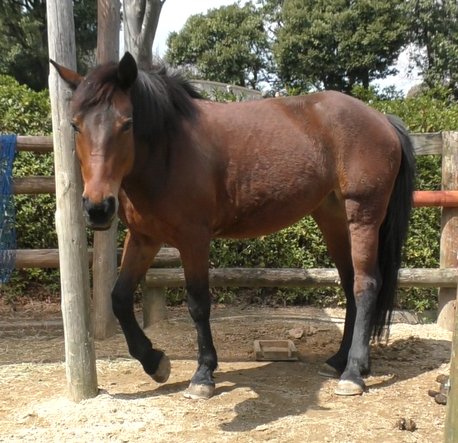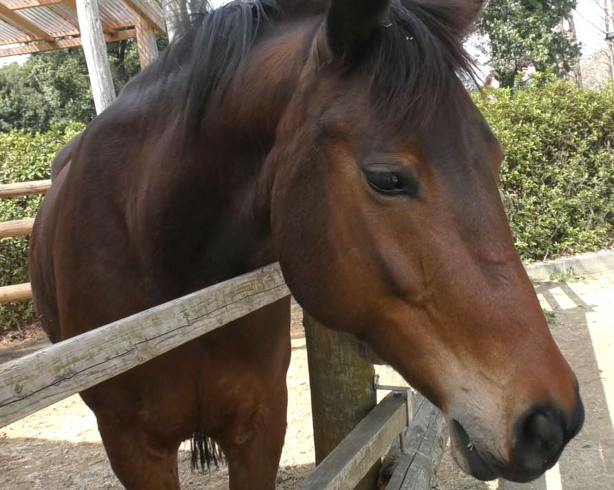 普段は奥の放飼場にいるので、乗馬コーナーにいる時しか近くで会えないレアキャラです。