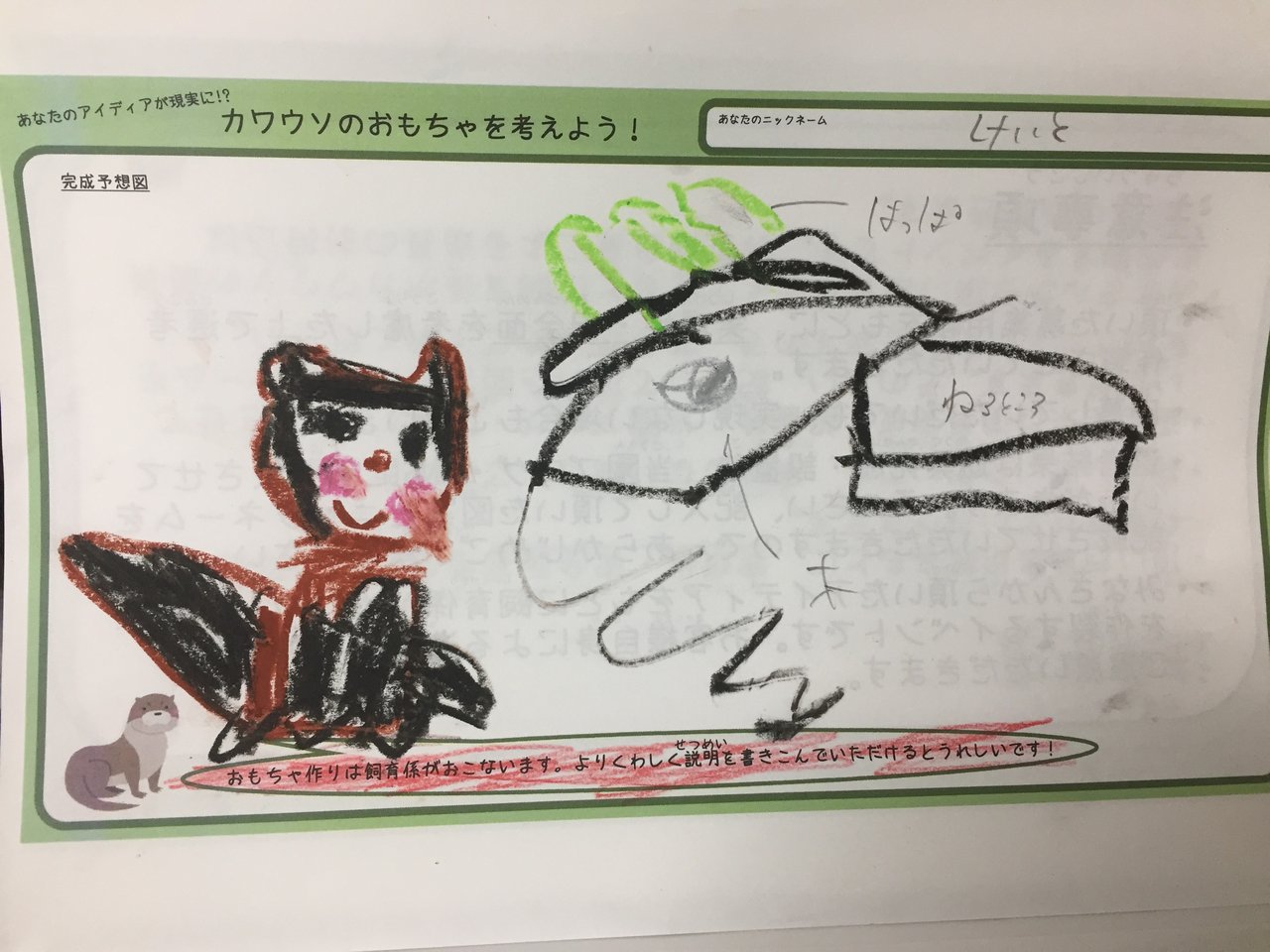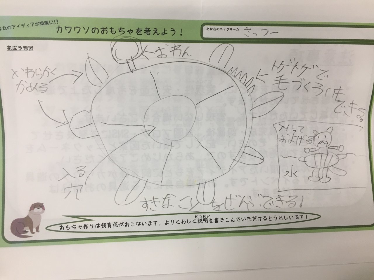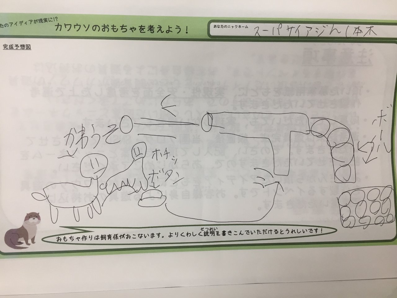 さて、現在小獣舎では「カワウソのおもちゃを考えよう!」というイベントを開催しております。