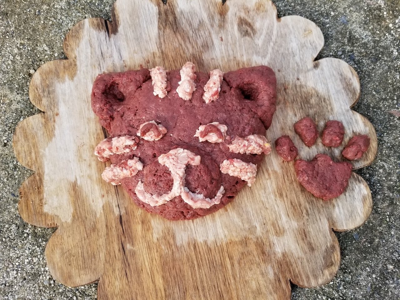 馬肉と鶏肉で作ったケーキと大きな骨をプレゼントし、ケーキは4kgもあるのに1分もしないうちに食べ終わりました。きっとすごく美味しかったのかな(^〜^)v