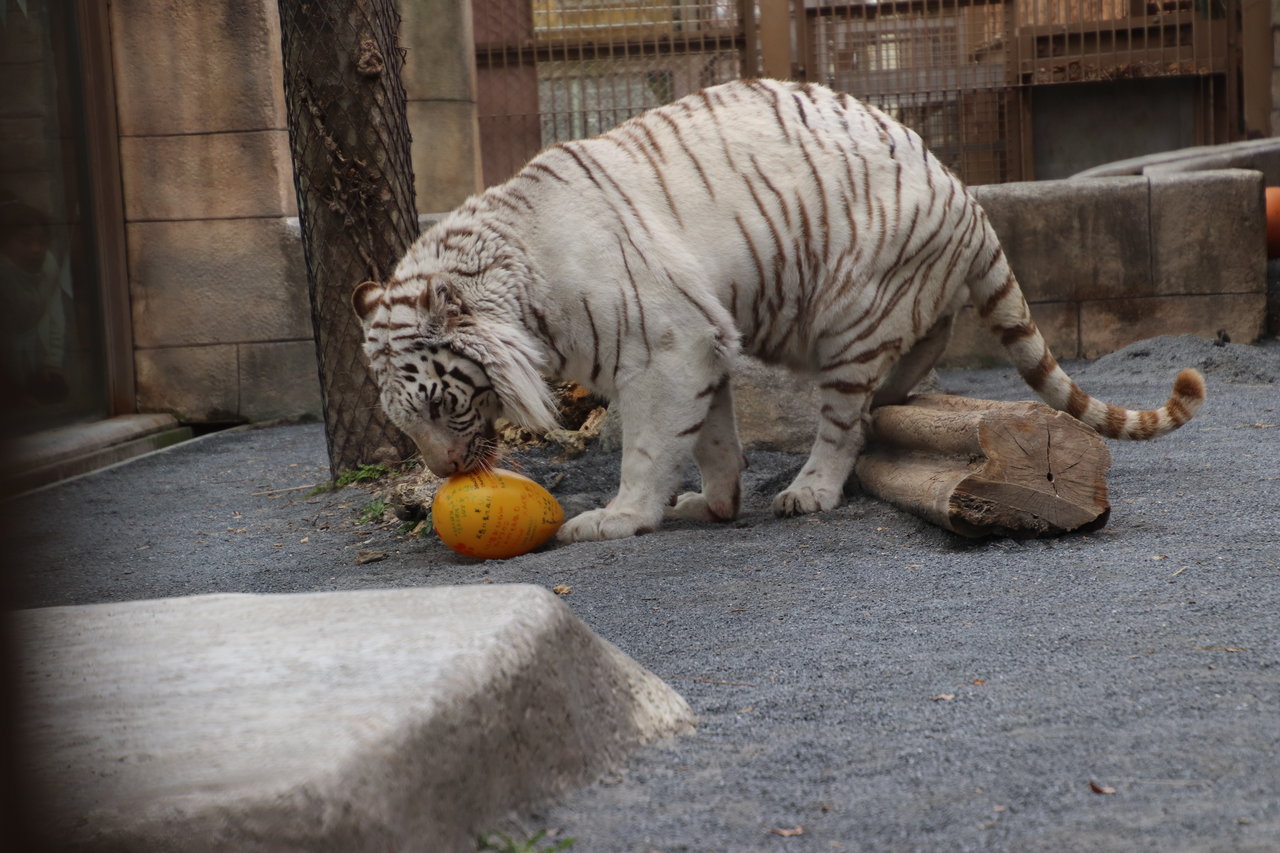 性格は、気の強い女の子で、飼育係が展示場にごはんを置きに行くと