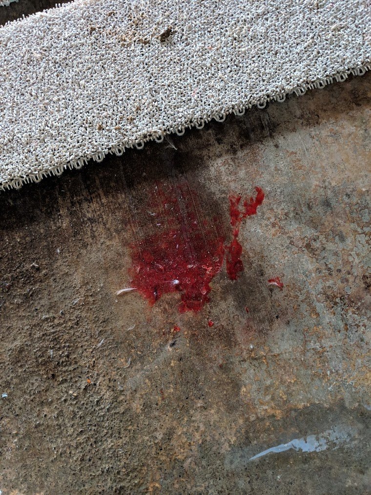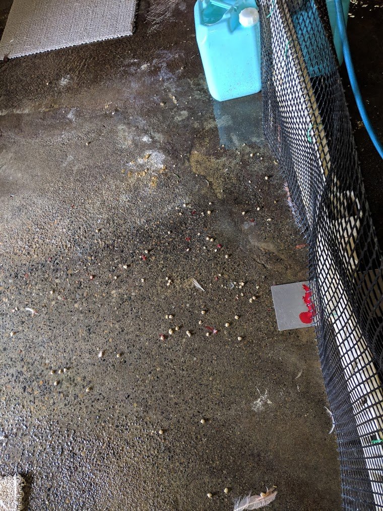 あるのはフラミンゴたちの食べカスと、糞と、謎の血痕のみ・・・。