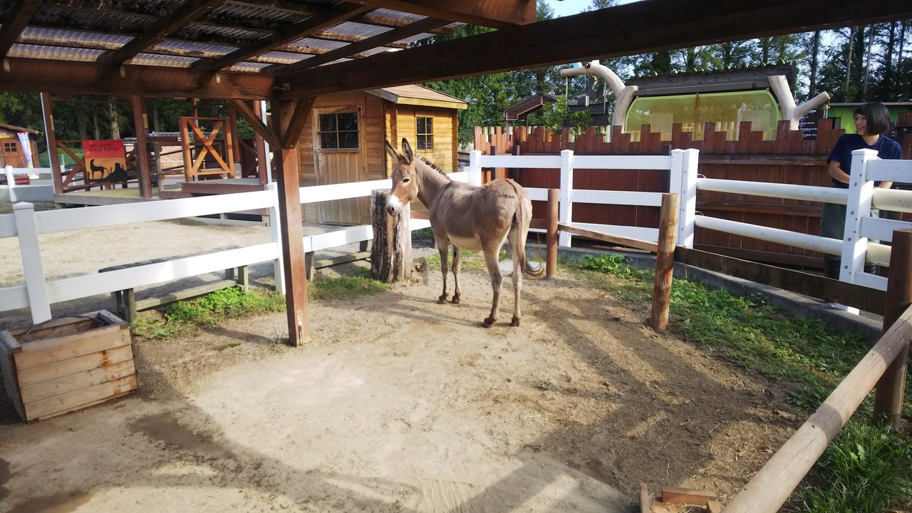 まだ来たばかりなので、慣らし展示を行っているのですが、涼しい那須から来たばかりと言うことで、今日は10時45分くらいまで、ロバのチヒロちやの横に出してみました。