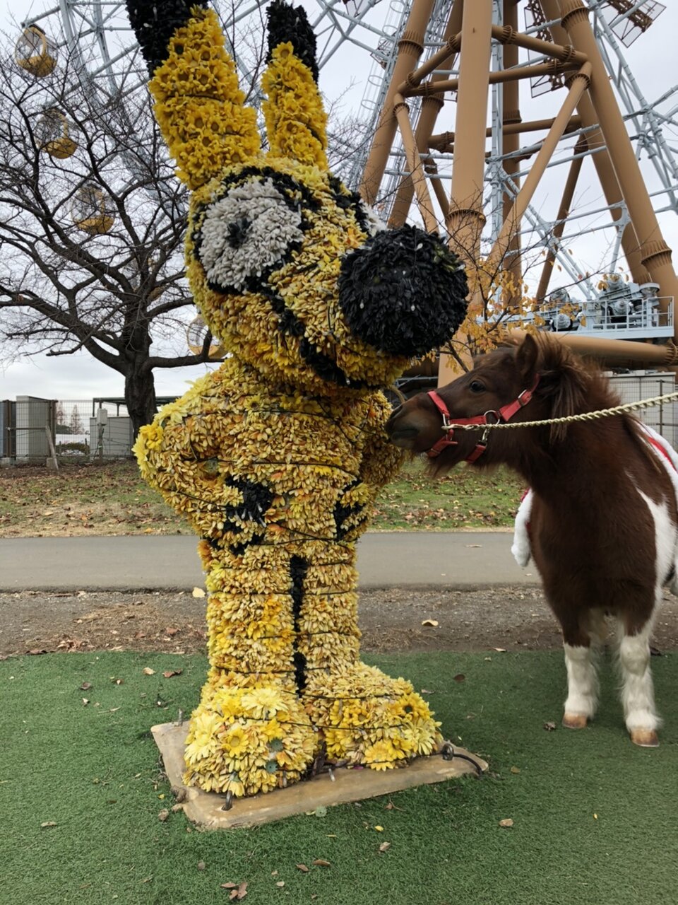最後に本日こむぎちゃんがお散歩で、動物のお花が飾られている場所まで行きました。