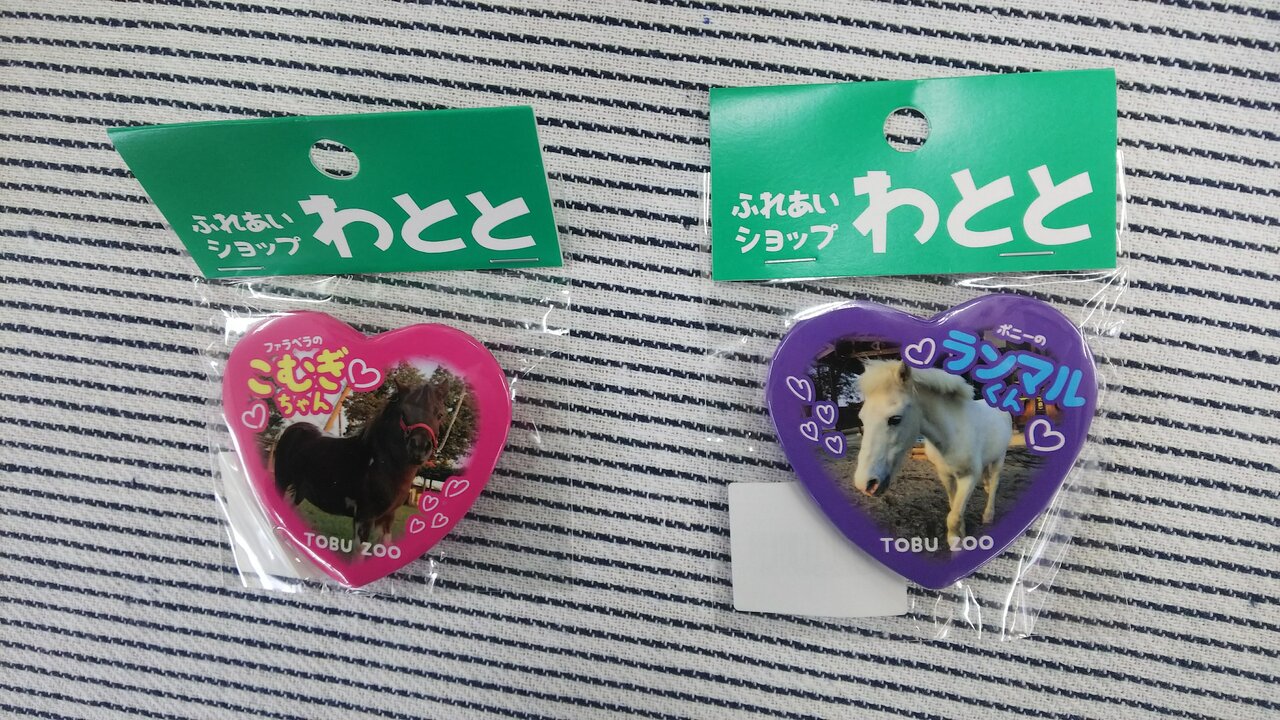 そして、こむぎちゃんと、ポニーのランマル君のハートのカンバッチも、300円でわととで販売しています。