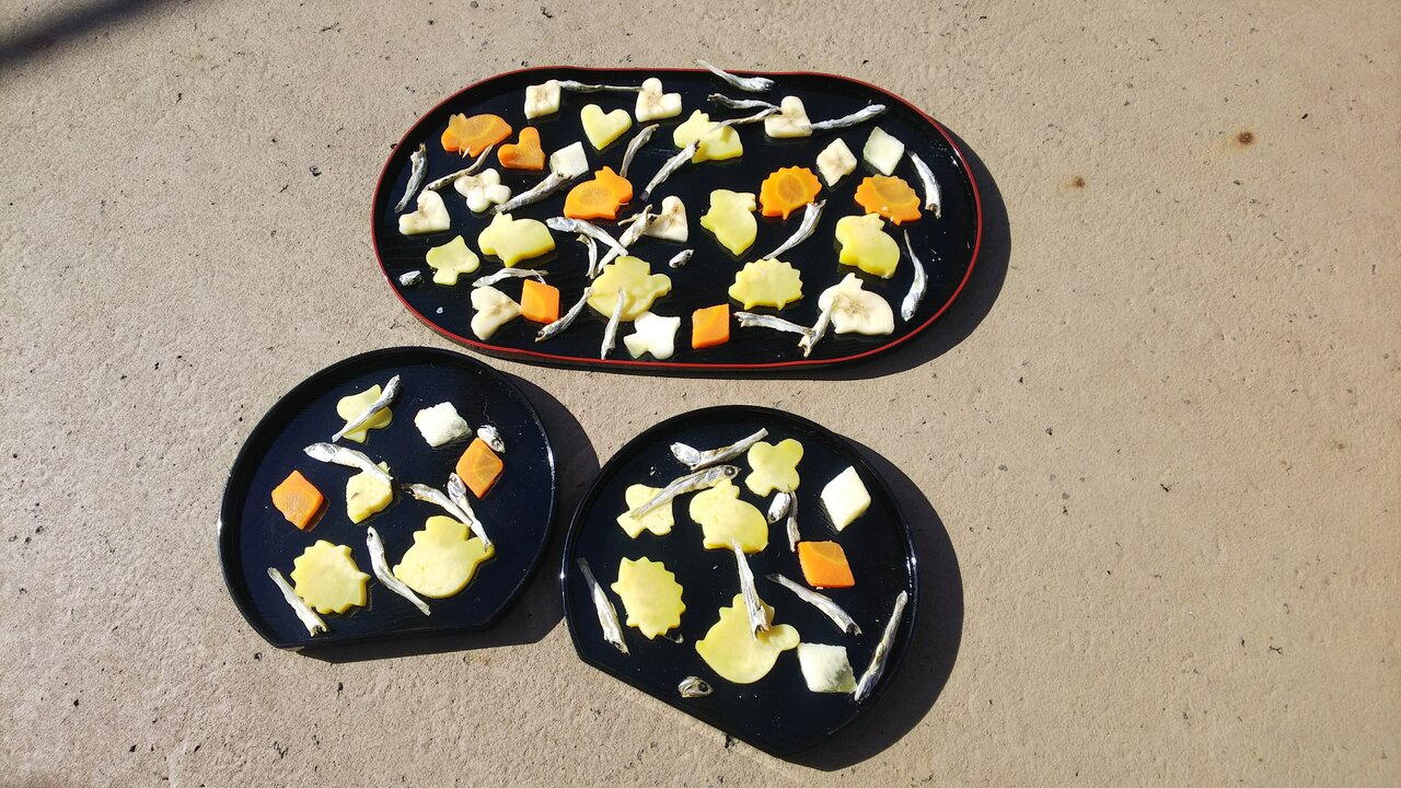フジ君とつくし君は寒いのでバオバブの中で暖まっていたので、小さいおぼんにして、