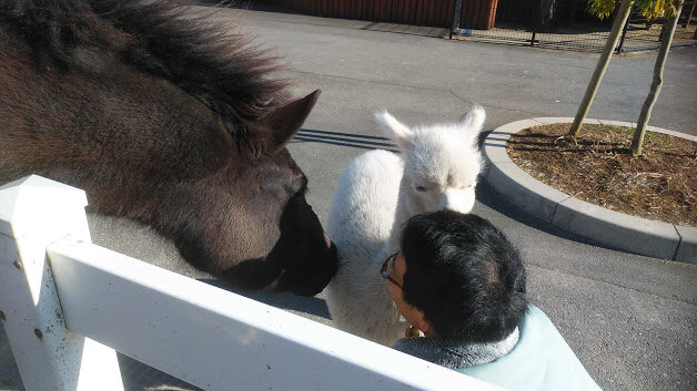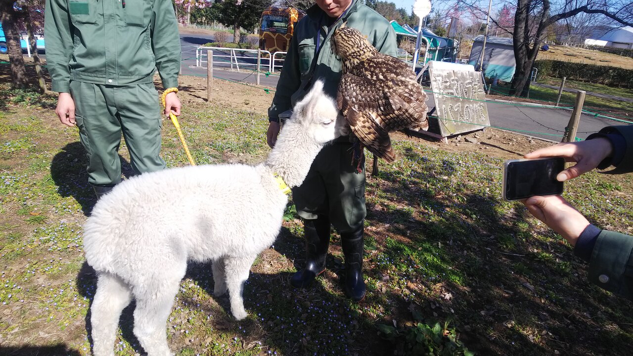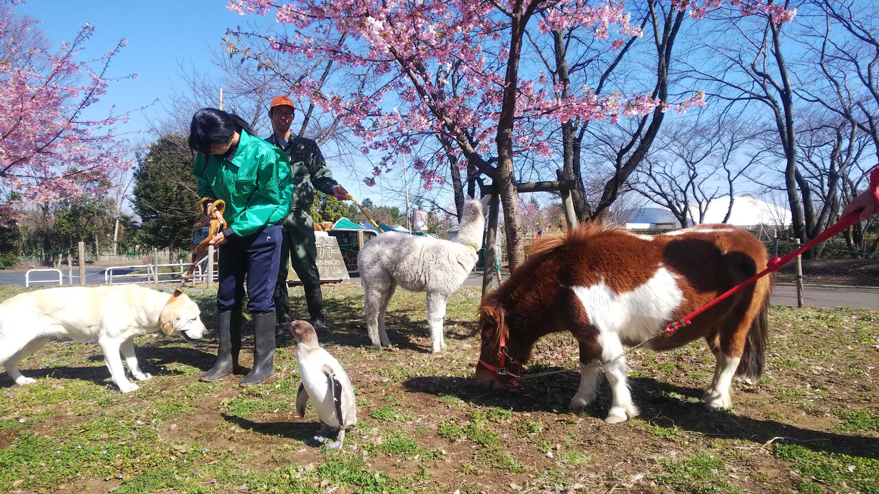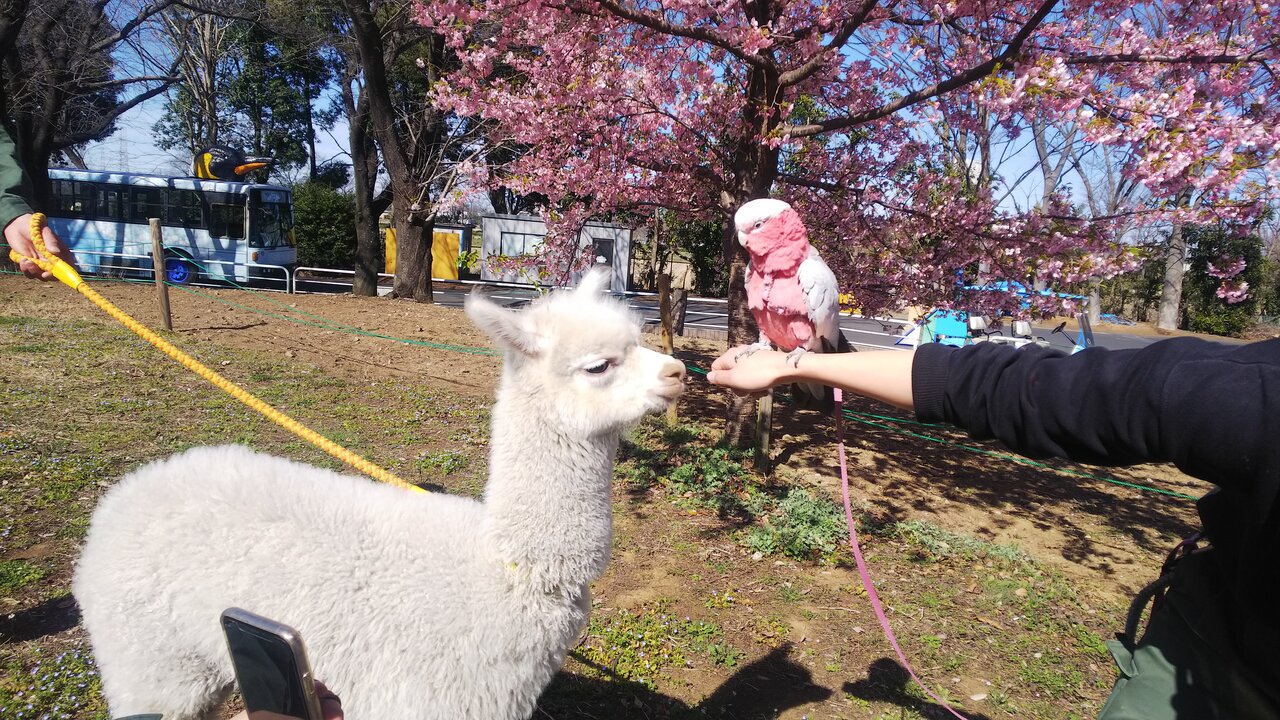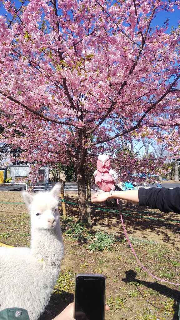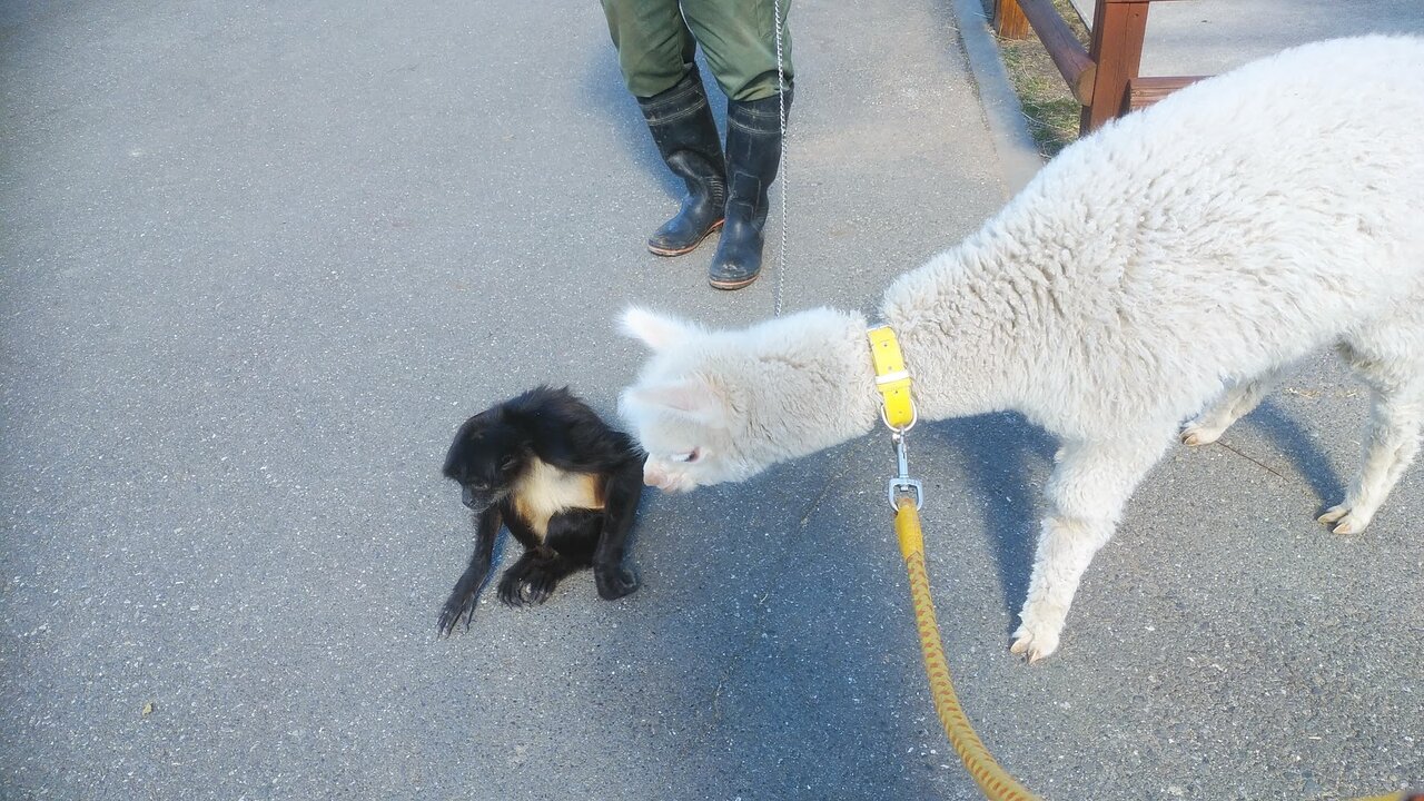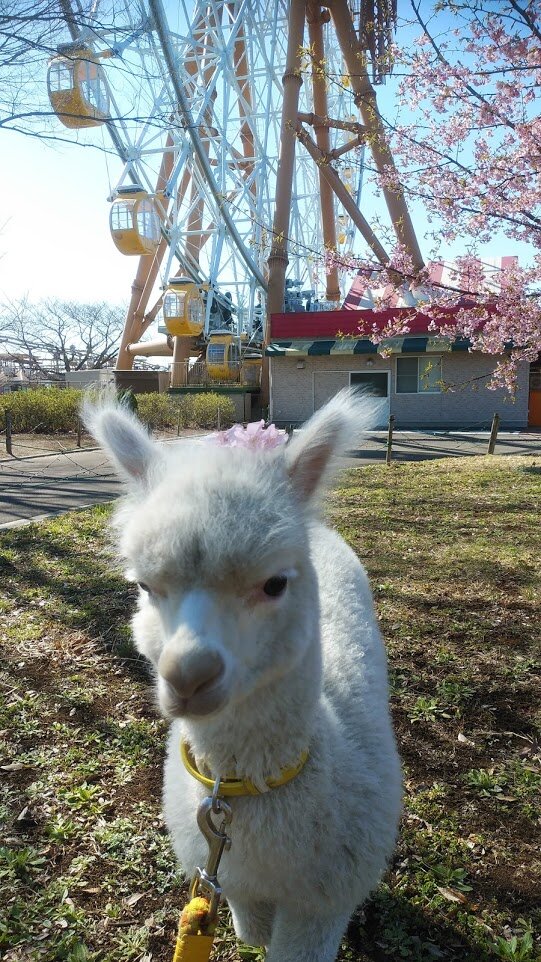 に行こうと思ったのですが、一人だと寂しいので、アルパカにしらたまちゃん、ラブラドールレトリーバーのキナコちゃん、フンボルトペンギンのシェムリ(シェムリって♂♀どっちですか?担当に聞き忘れた💧)を誘って、散歩に行きました。