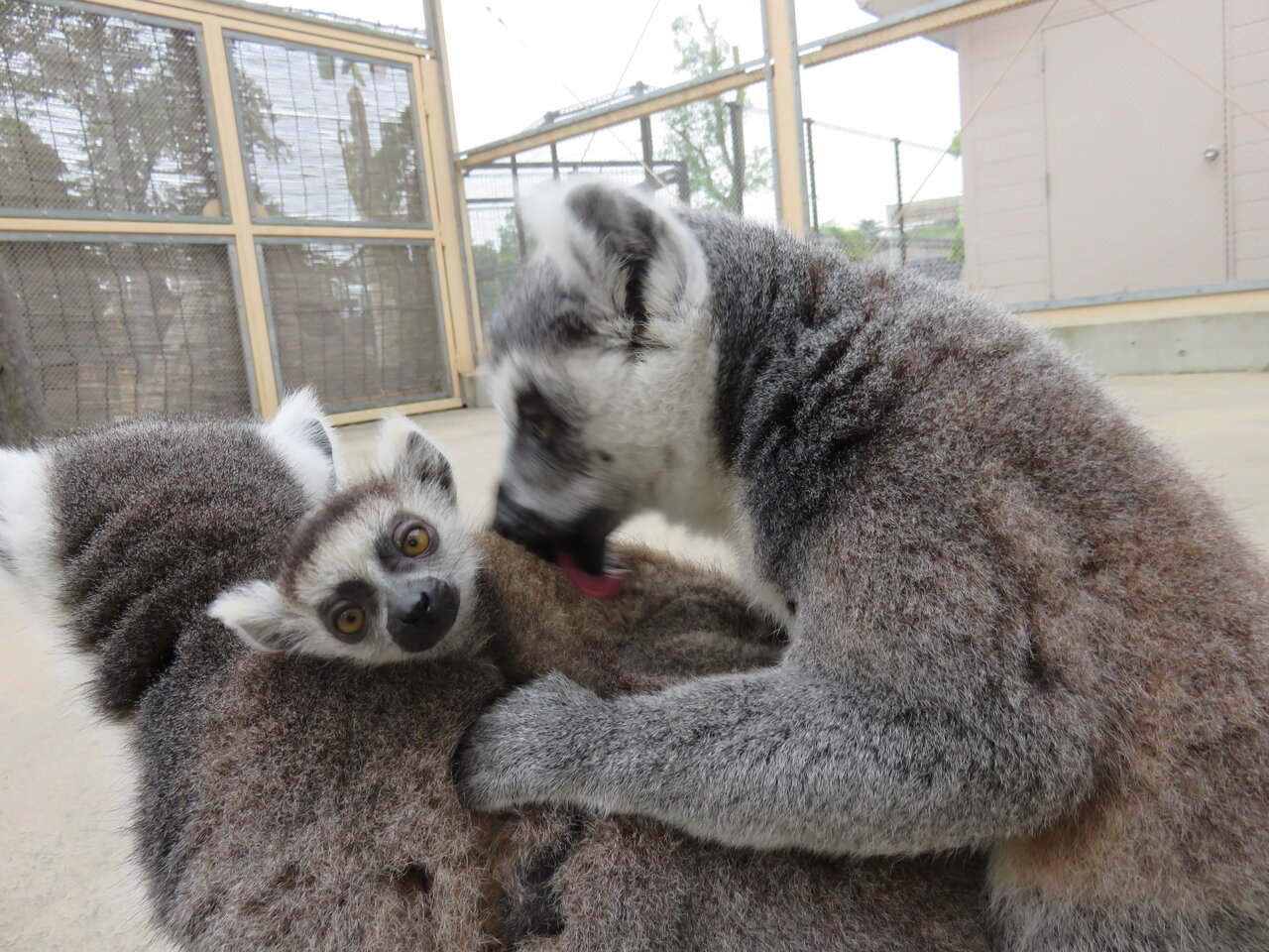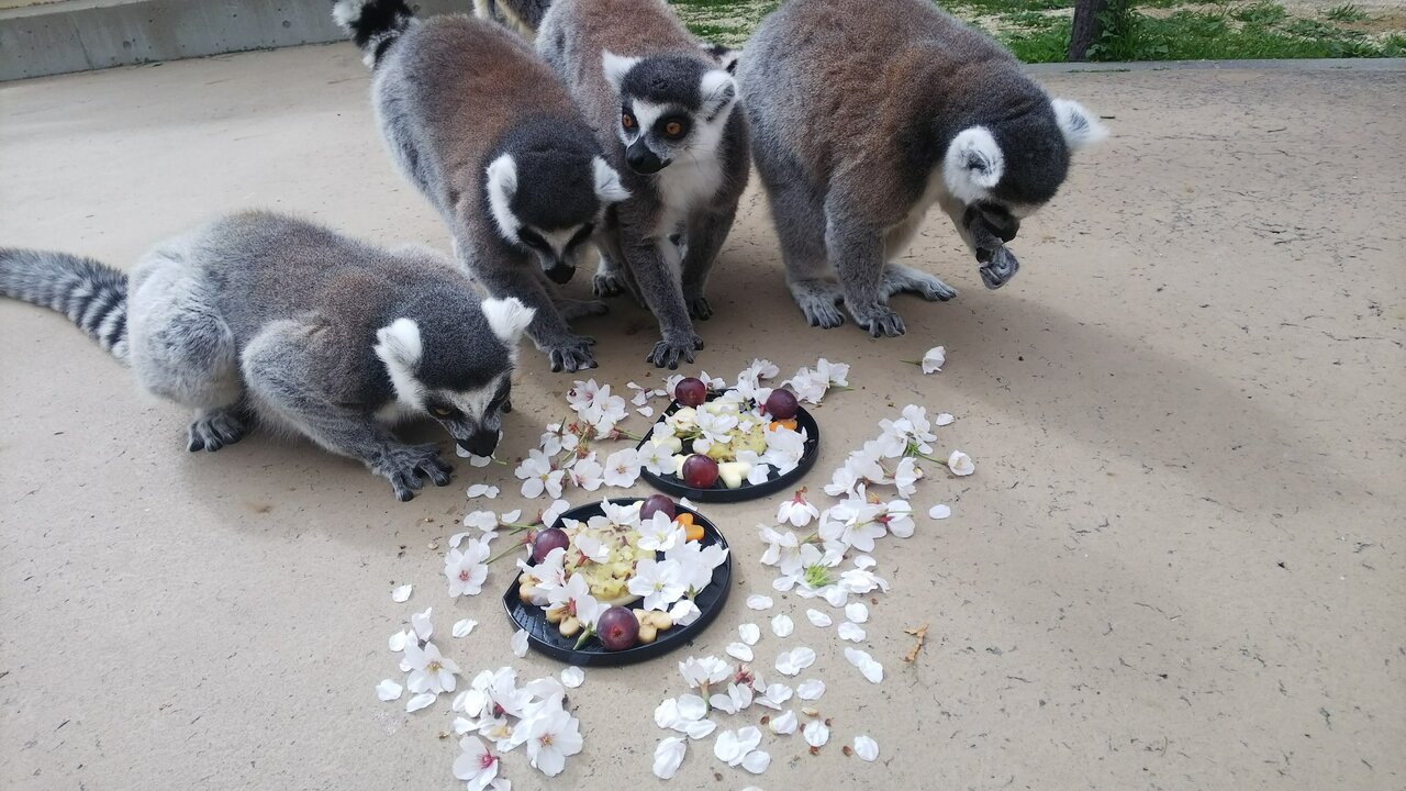 ワオキツネザルのモモ君の誕生日でしたので、ひっそりとお祝いをしました。