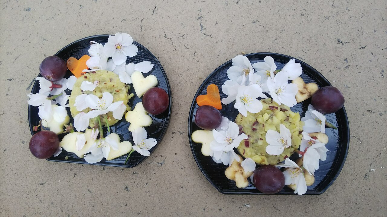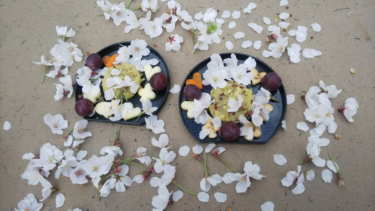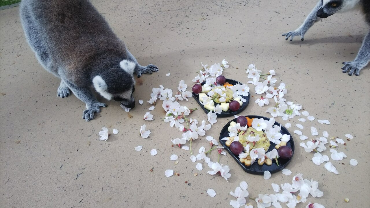この時期限定で飛んでくる桜の花びらはワオ達喜んで食べるので、トッピングに
